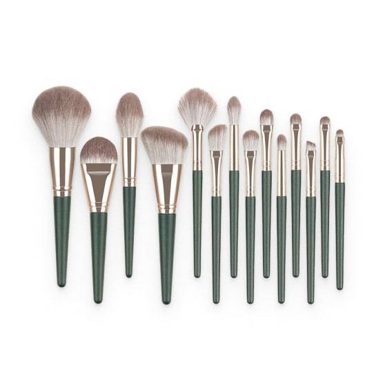 This is a nice set of makeup brushes. There are 14 brushes in this set. Everything that you could want and need. There are no loose hairs and the brushes appear to be well made. The handles are nice wood and fit my daughters hands. My daughter likes this set. This is a good set of makeup brushes especially at this price.
