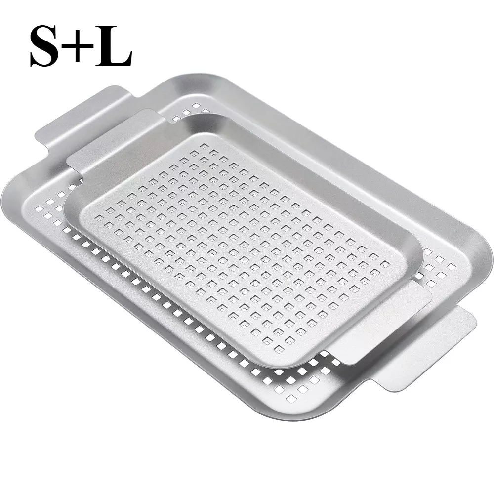 2PCS Stainless Steel Perforated BBQ Grill Pans with Handles
