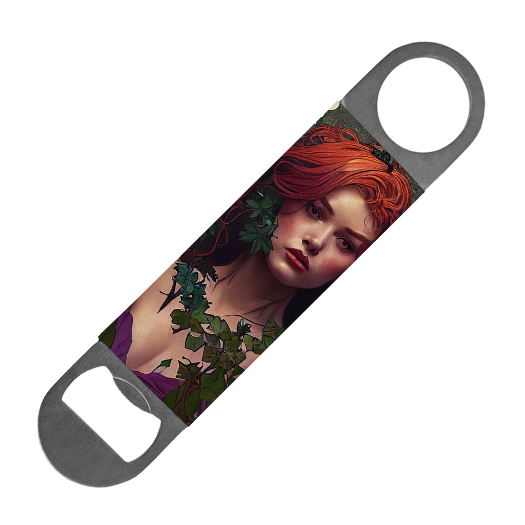 Abstract Flower Design Bottle Opener is made of PolyLeather clad, 2-sided, and stainless steel, sturdy and durable.