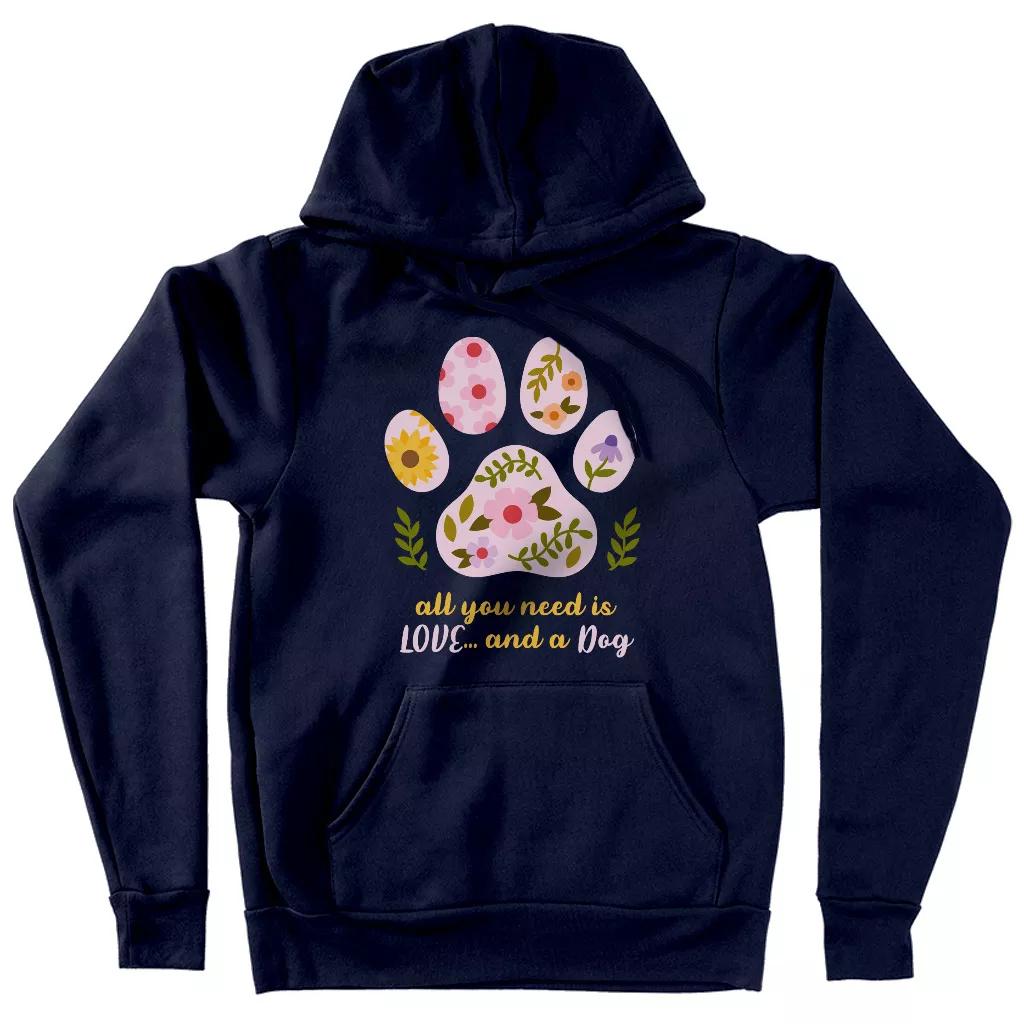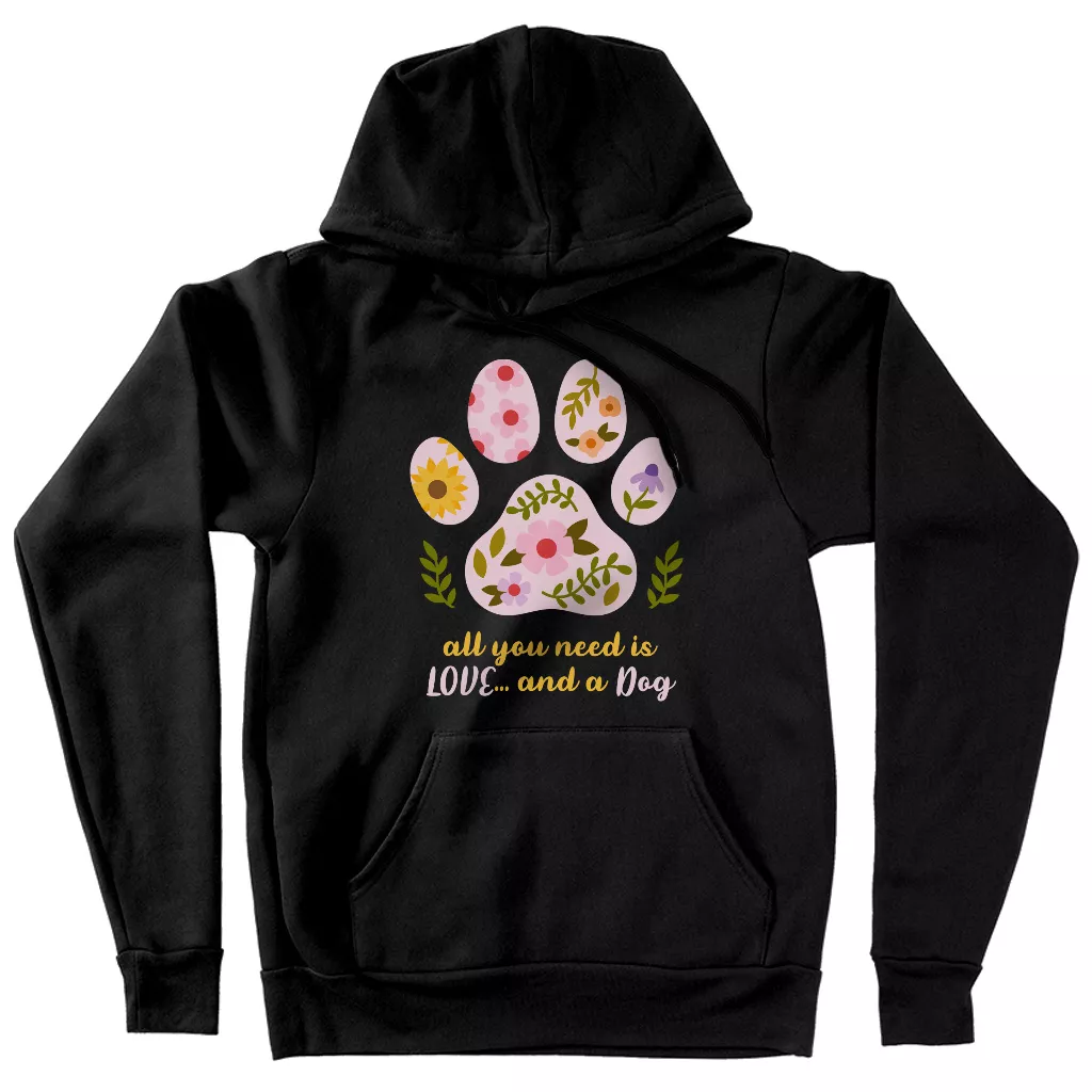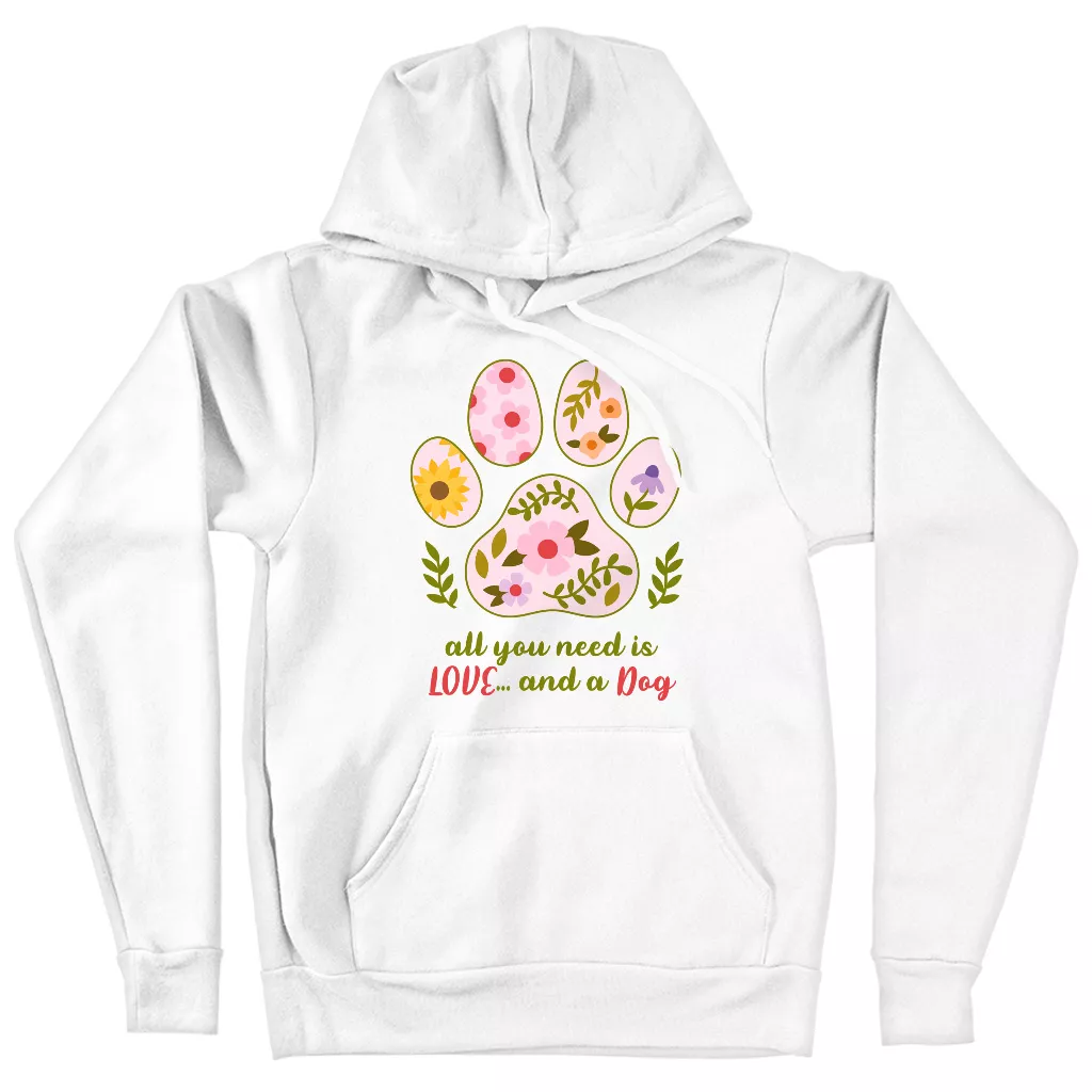 All You Need Is Love and a Dog Hoodie – Paw Print Hooded Sweatshirt – Boho Dog Unisex Hoodie
