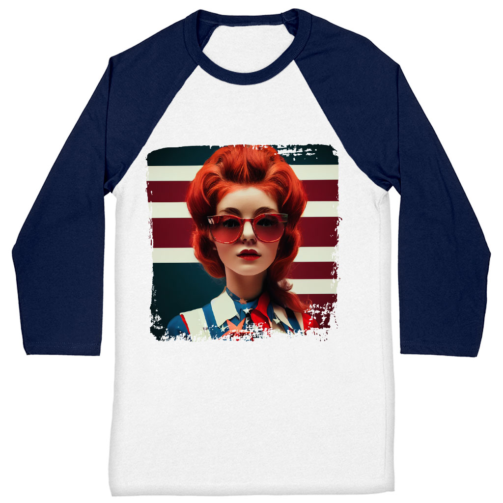 American Flag Baseball T-Shirt – Graphic T-Shirt – Girl Art Tee Shirt