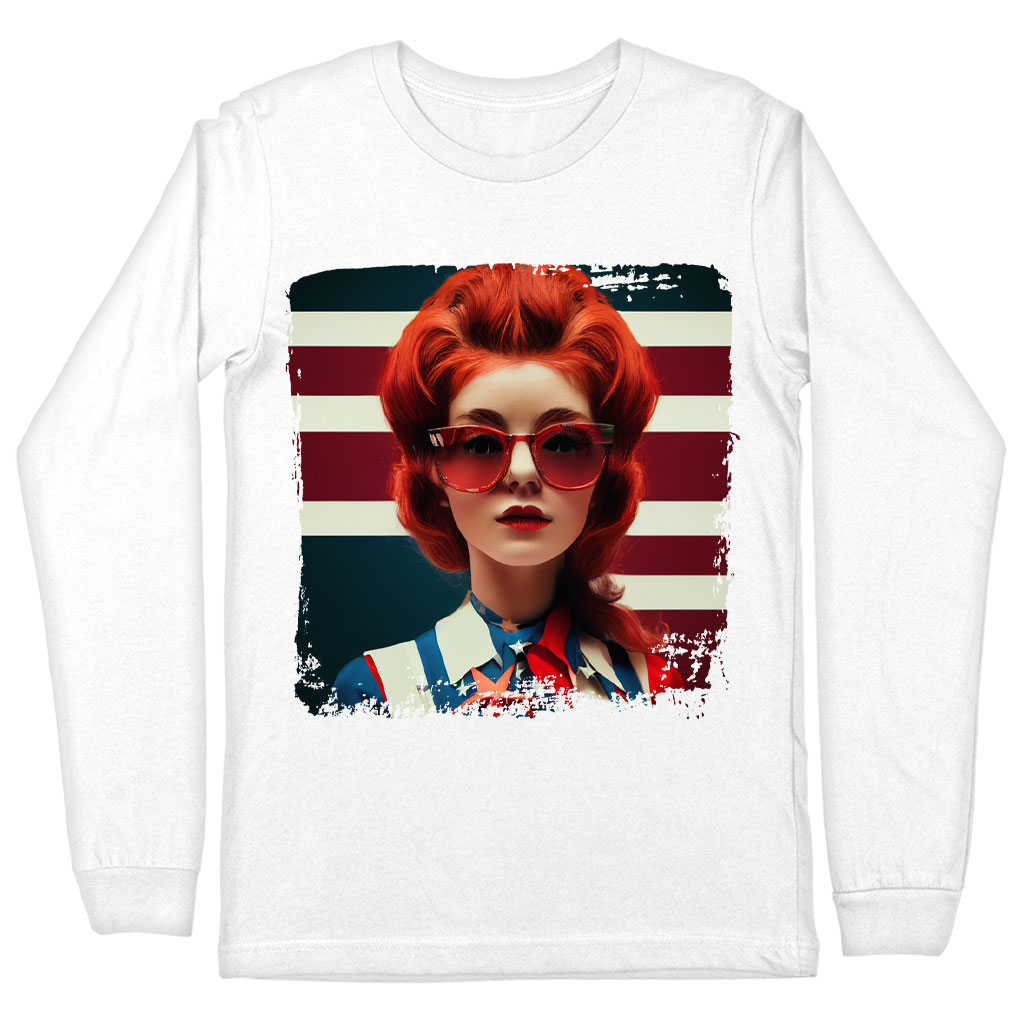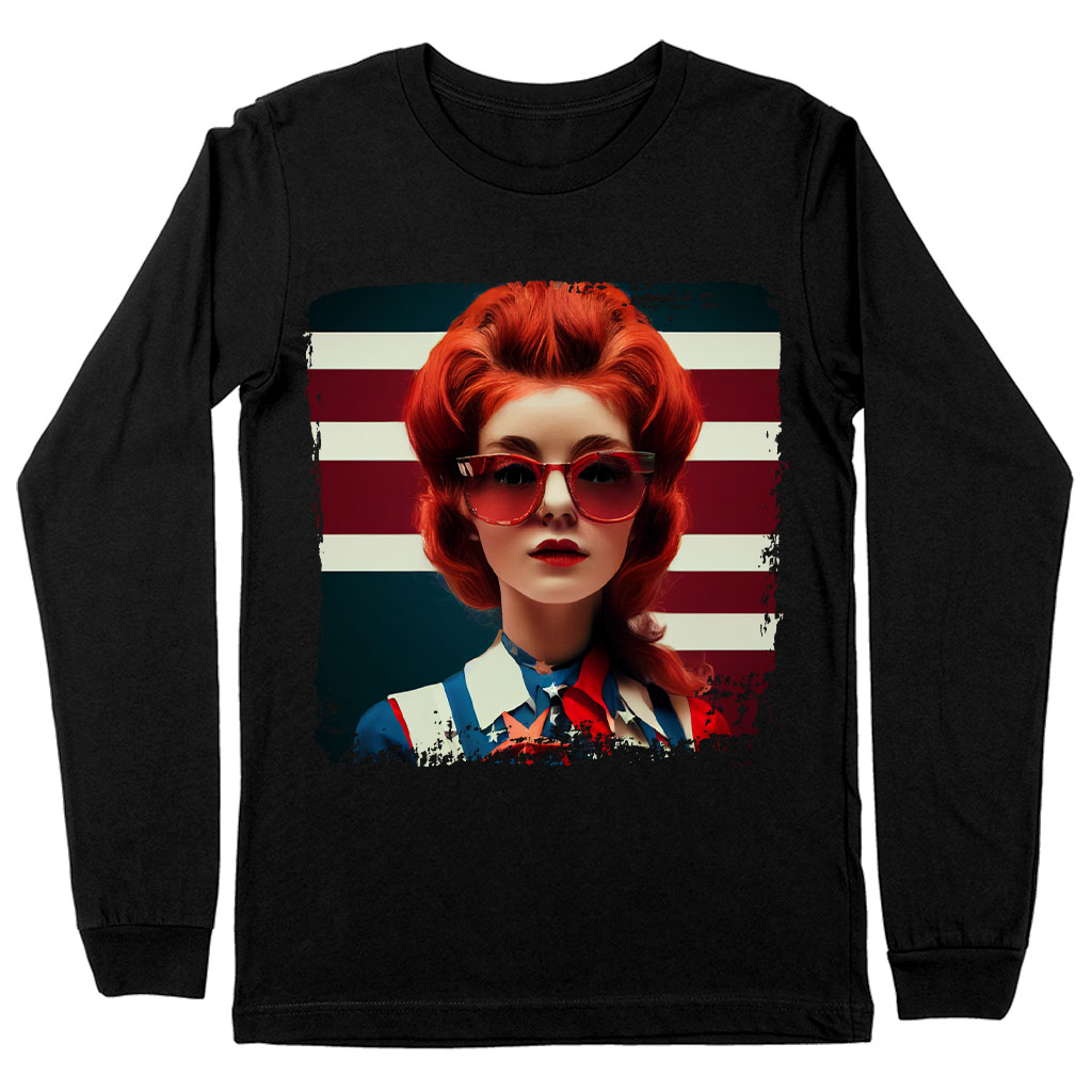 American Flag Long Sleeve T-Shirt – Graphic T-Shirt – Girl Art Long Sleeve Tee Shirt