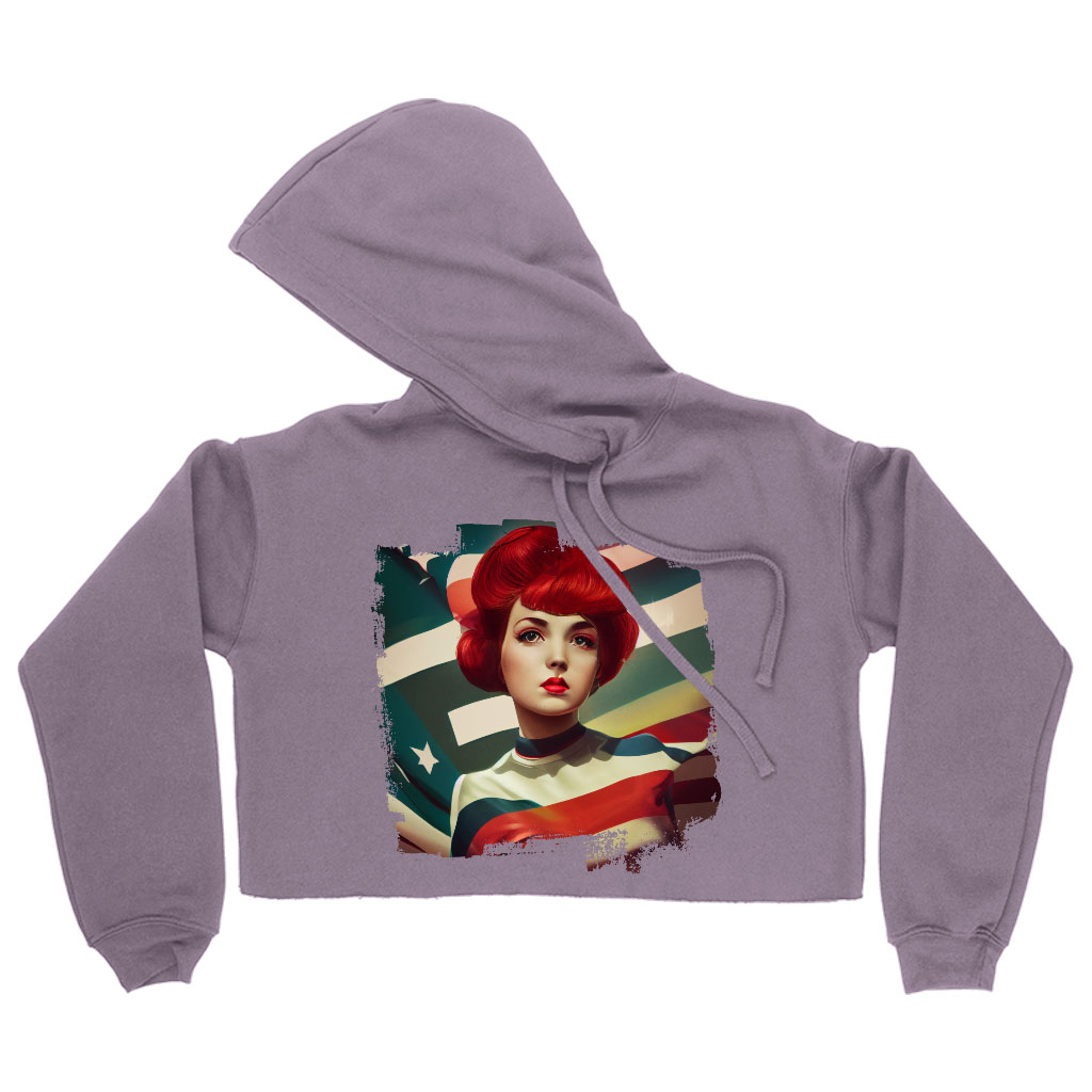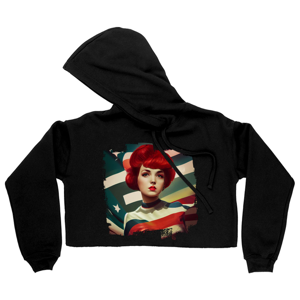 American Flag Print Women’s Cropped Fleece Hoodie – Cool Cropped Hoodie for Women – Art Print Hooded Sweatshirt