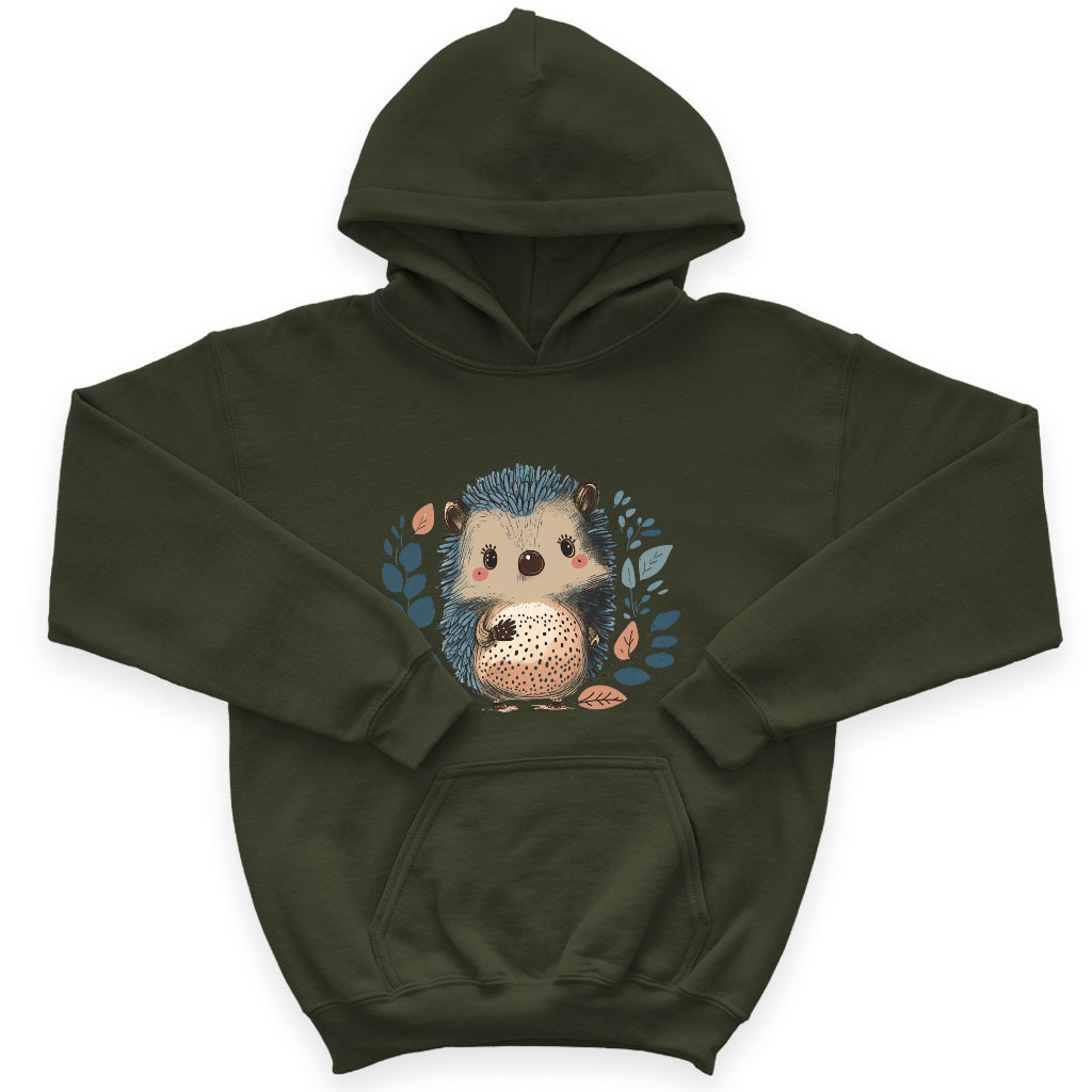 Animal Graphic Kids’ Sponge Fleece Hoodie – Funny Hedgehog Kids’ Hoodie – Cartoon Print Hoodie for Kids