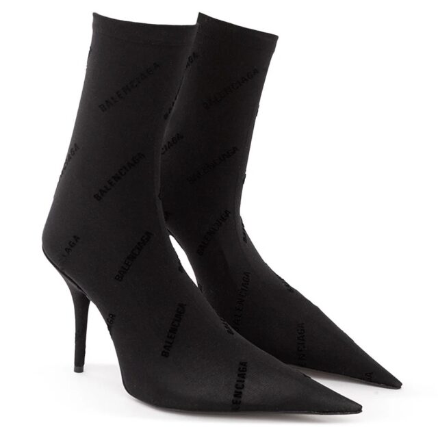 The elongated toe and textured sole not only add visual interest but also enhance performance and support. Crafted with precision, the slip-on style ensures convenience without compromising on elegance. The standout feature? The iconic Balenciaga monogram, press-stamped on the side panels, that adds a touch of exclusivity and instantly elevates any outfit.