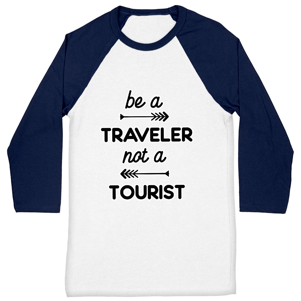 Be a Traveler Not a Tourist Baseball T-Shirt – Cool Design T-Shirt – Unique Baseball Tee