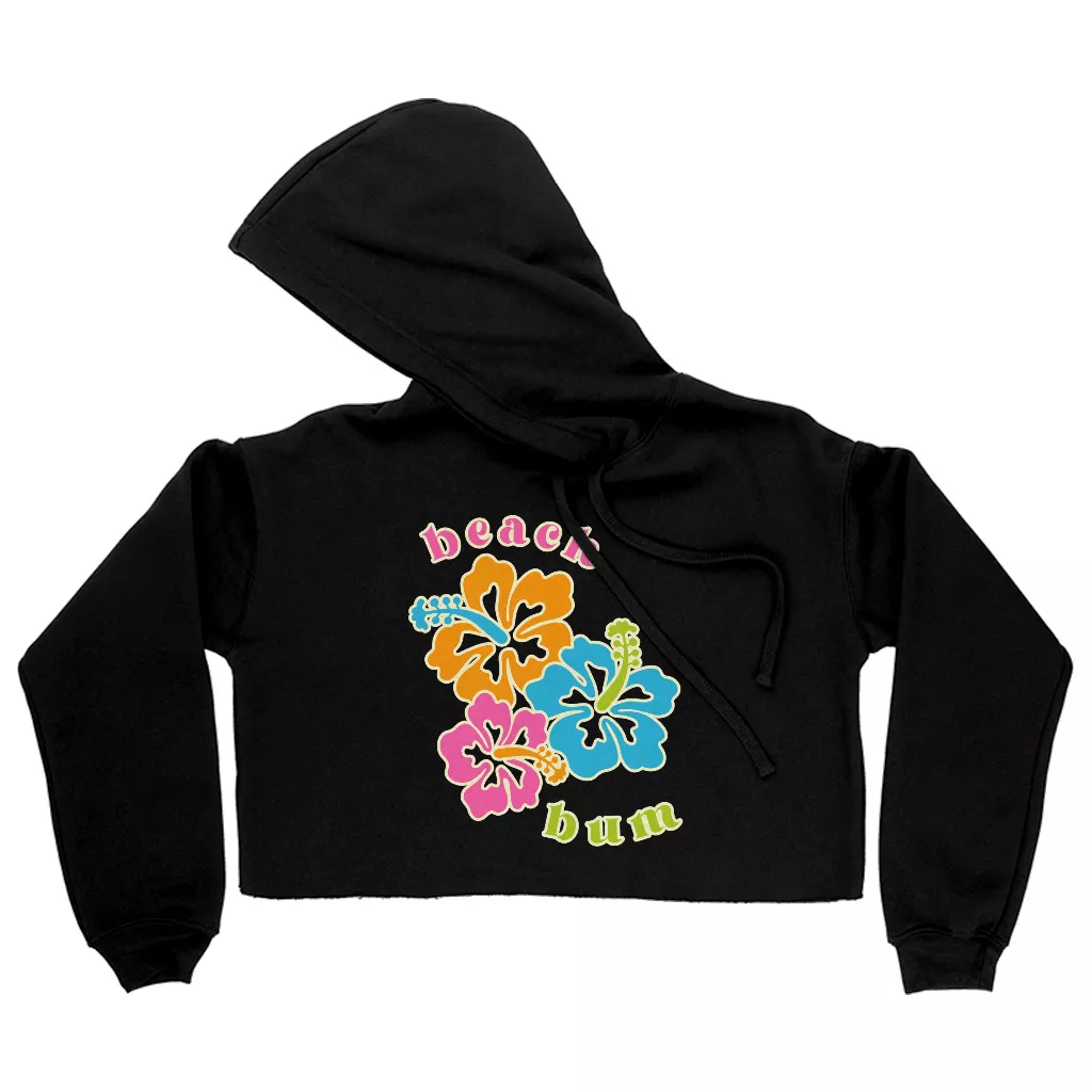 Beach Bum Women’s Cropped Hoodie – Retro Hooded Sweatshirt – Hibiscus Super Crop Top Hoodies