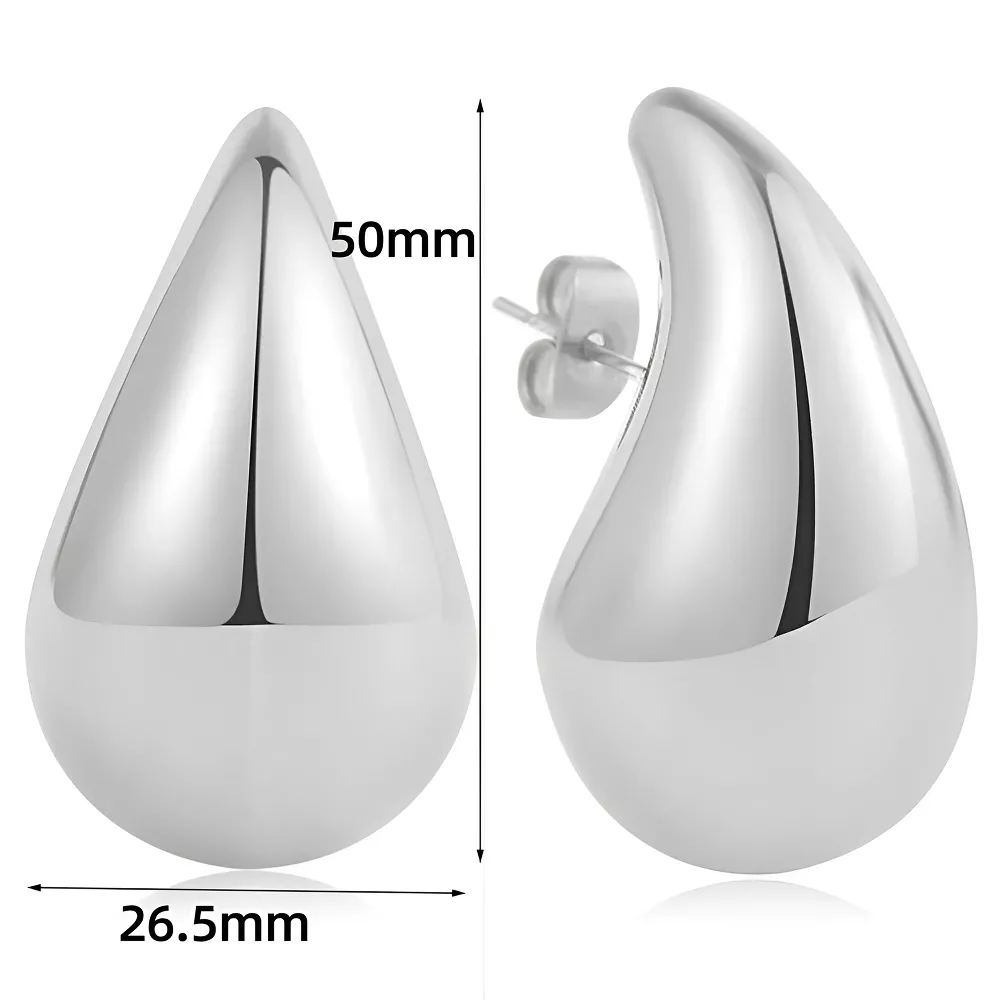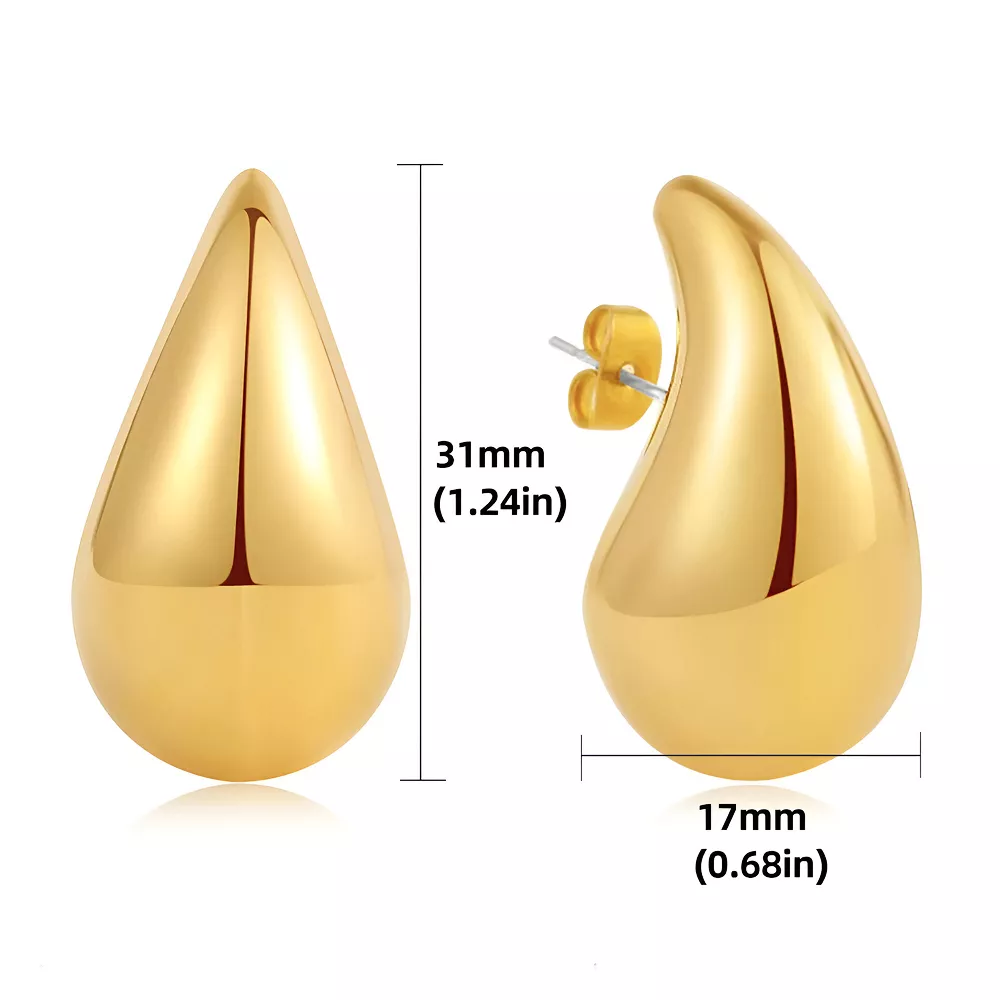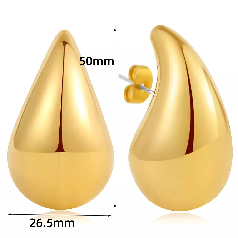 • Bold Design: The oversized, chunky gold hoops with a unique water drop shape create an eye-catching silhouette that demands attention.