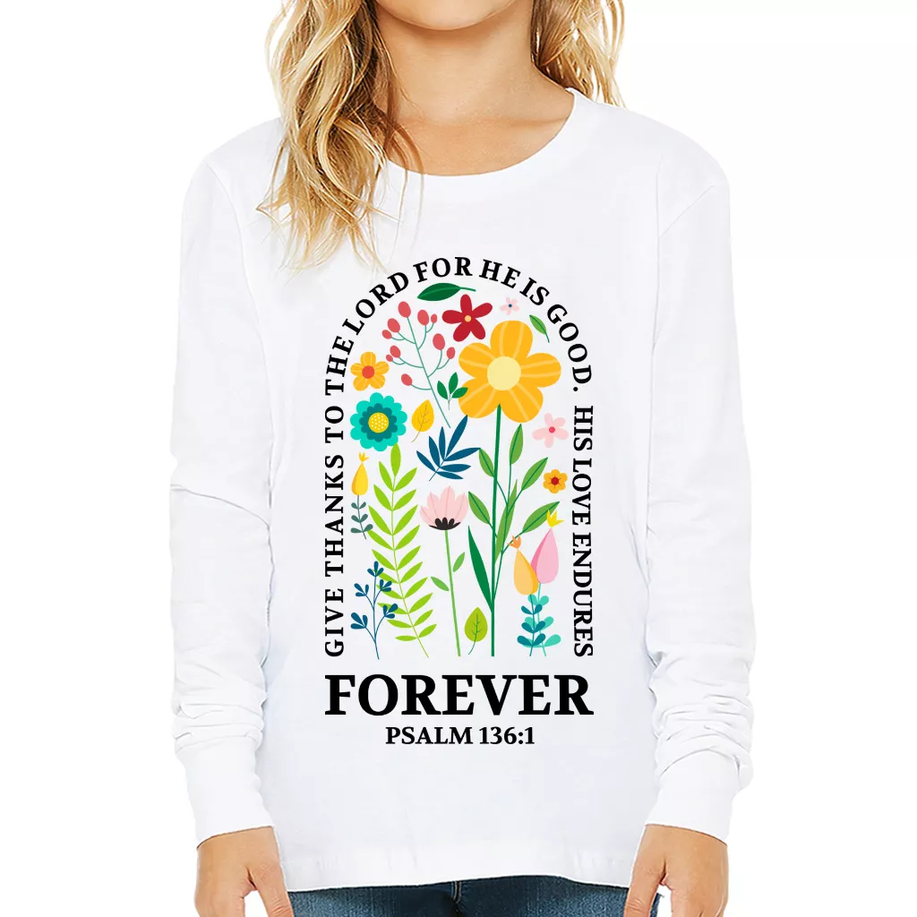 Boho Flowers Kids’ Long Sleeve T-Shirt – Positivity T-Shirt for Kids – Bible Verse Tee for Boys Girls
