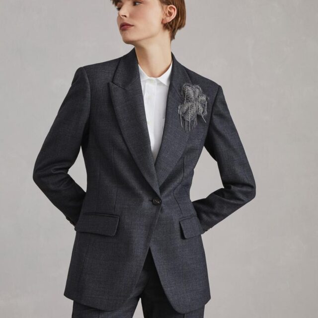 - Double-Breasted Blazer: Featuring wide peaked lapels and a classic button-front closure for a refined, stylish look.