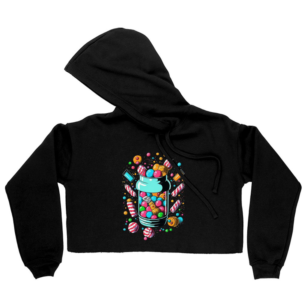 Candy Cute Women’s Cropped Hoodie – Cute Cropped Hoodie – Coloful Graphic Hooded Sweatshirt