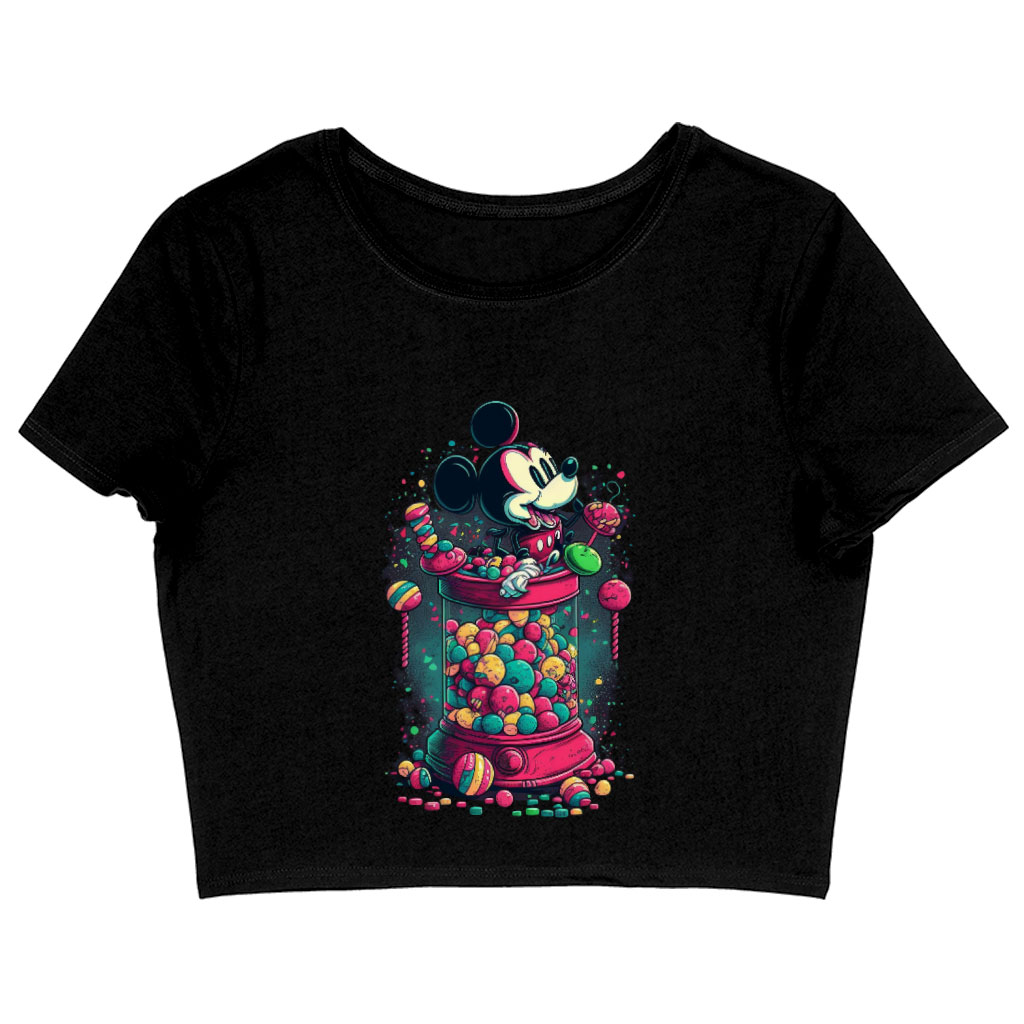 Candy Design Women’s Cropped T-Shirt – Kawaii Crop Top – Colorful Crop Tee Shirt