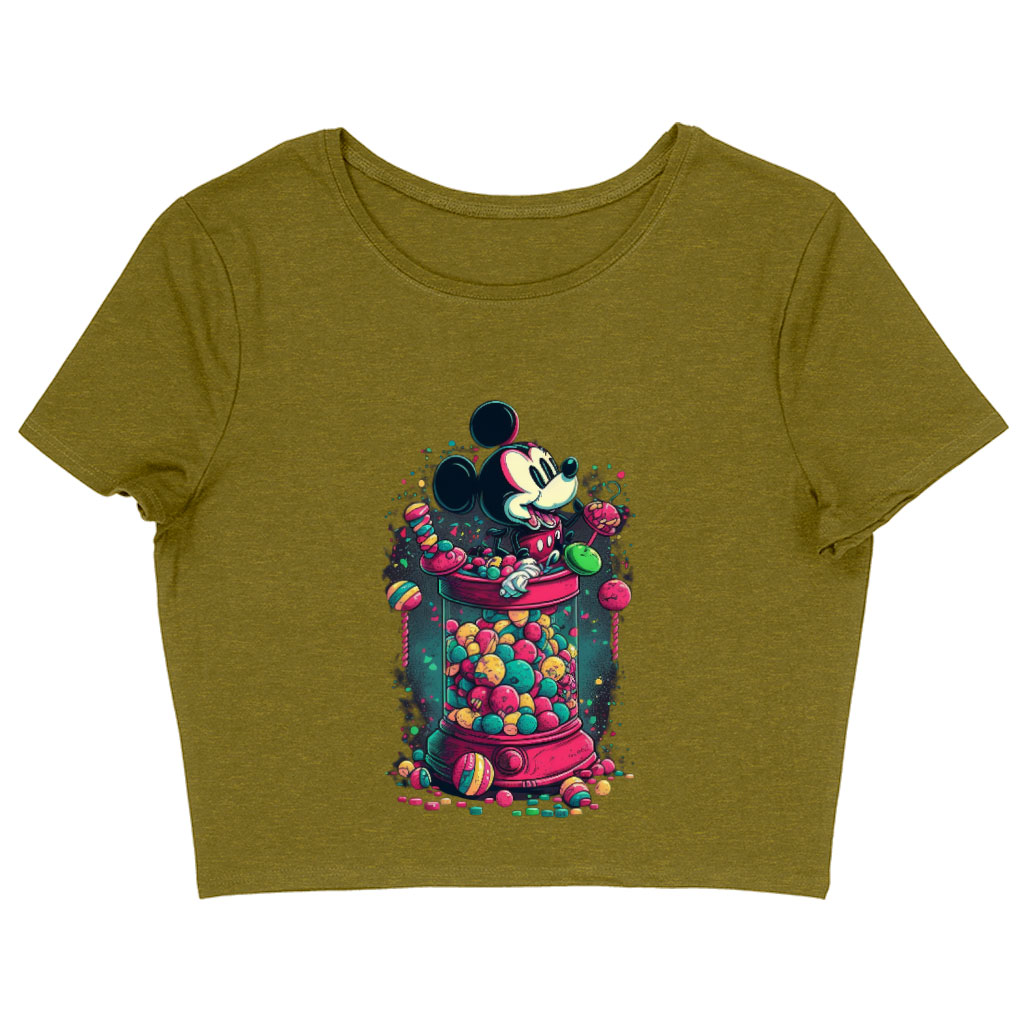 Candy Design Women's Cropped T-Shirt - Kawaii Crop Top - Colorful Crop Tee Shirt Clothing T-Shirts Color : Black|Heather Olive|White