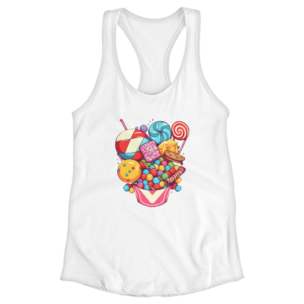 Candy Print Racerback Tank – Graphic Tank – Sweet Workout Tank