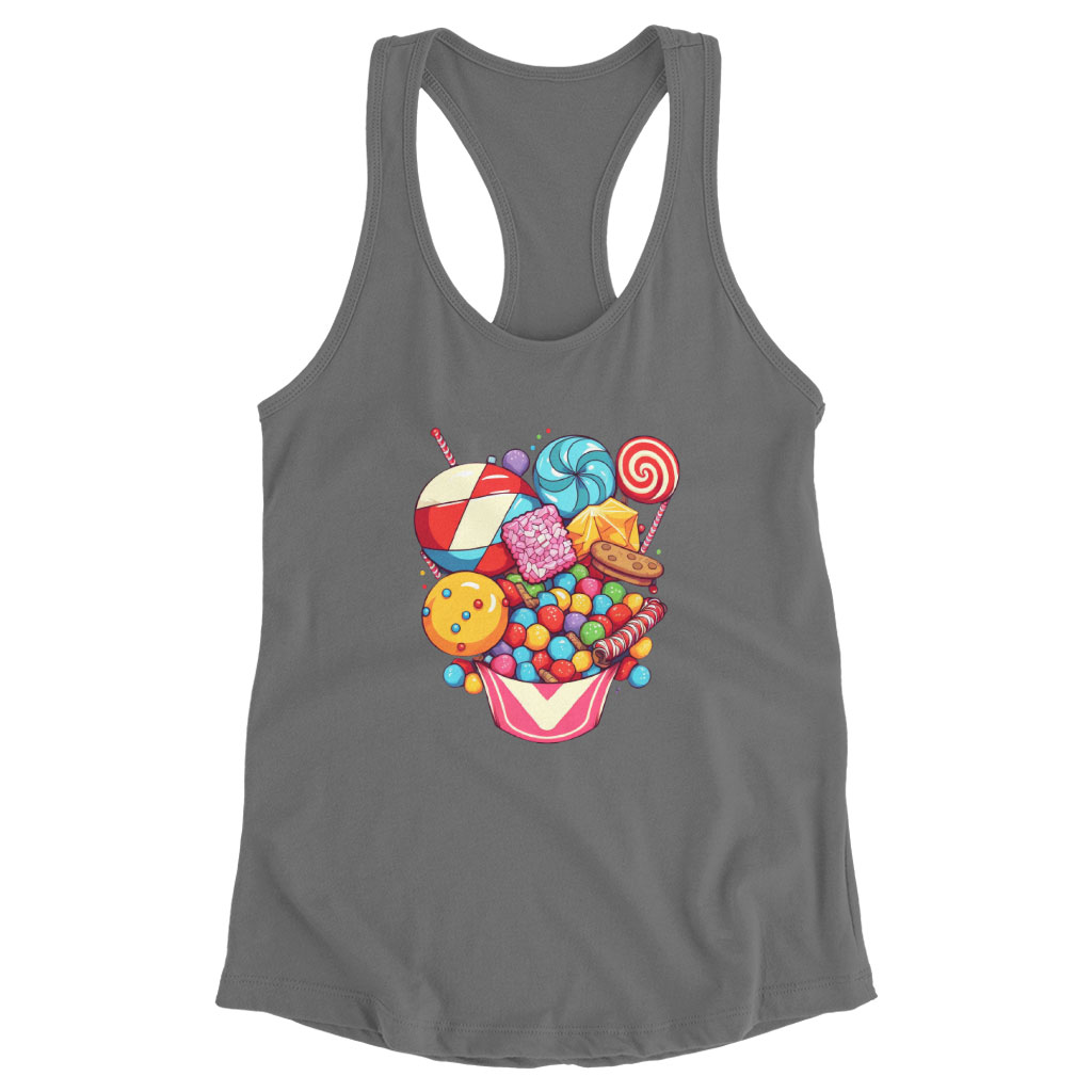 Candy Print Racerback Tank - Graphic Tank - Sweet Workout Tank Clothing Tanks Color : Black|Gray|White