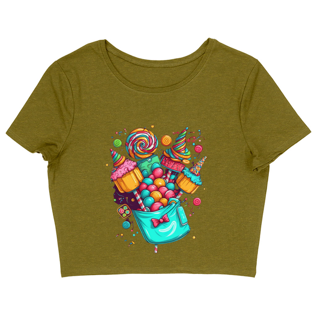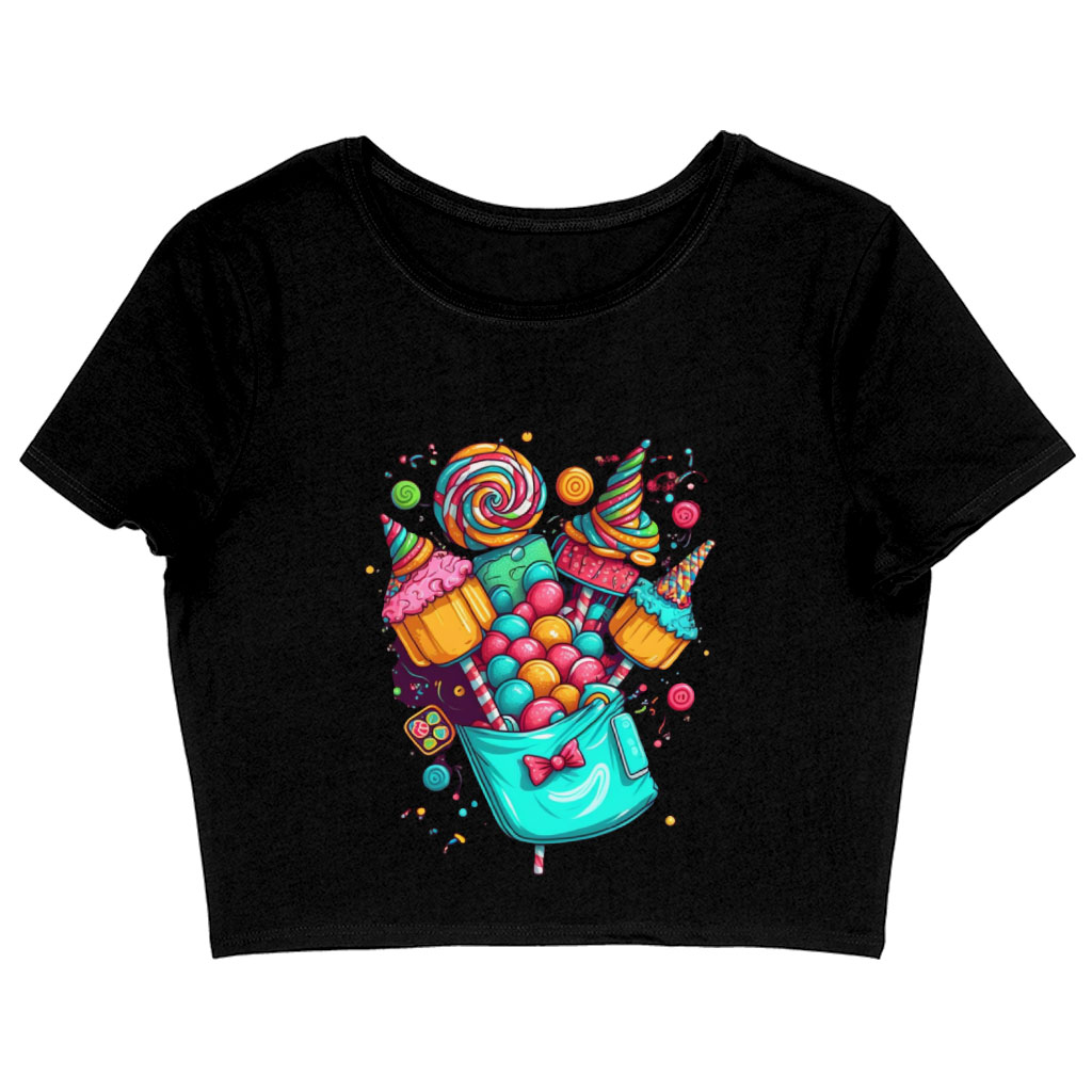 Candy Women’s Cropped T-Shirt – Themed Crop Top – Printed Crop Tee Shirt