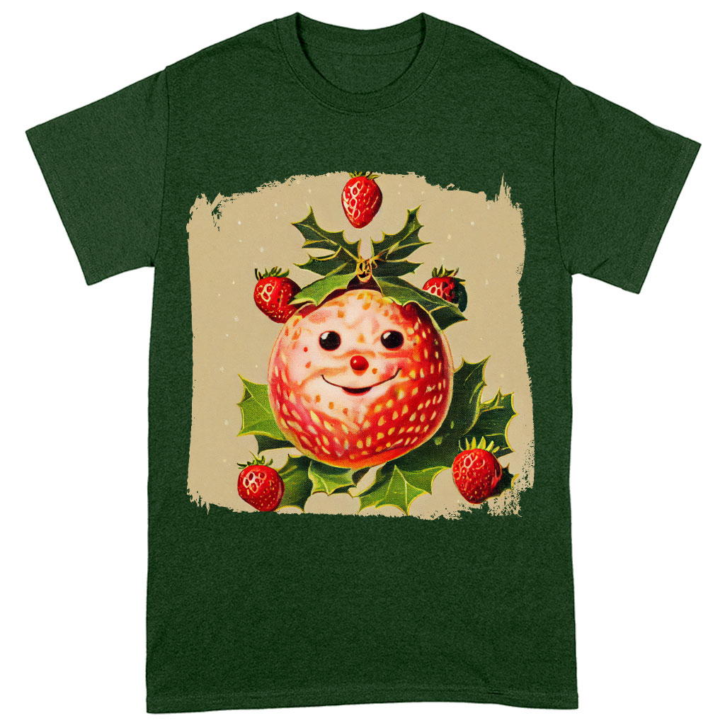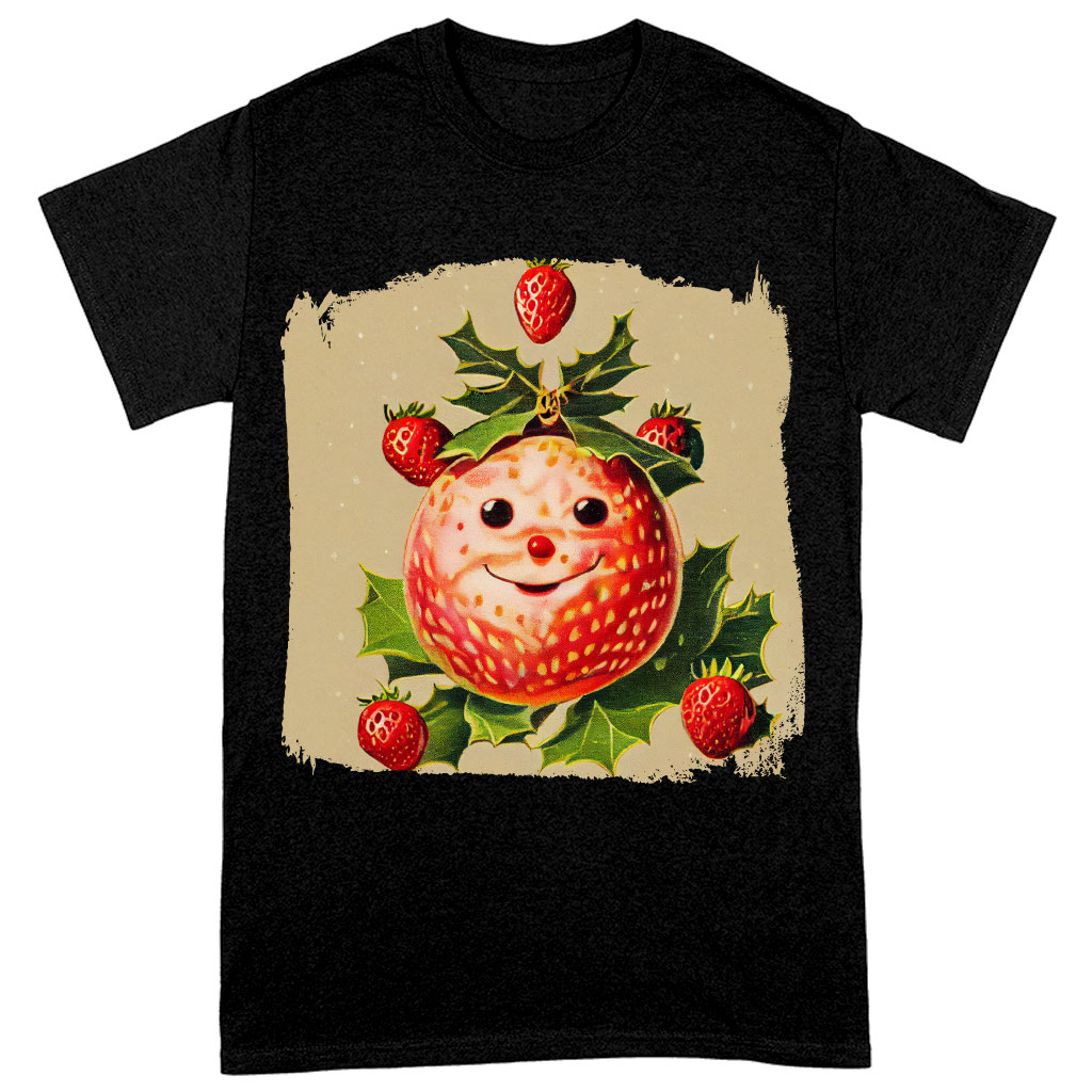 Cartoon Strawberry Heavy Cotton T-Shirt - Strawberry Print Tee Shirt - Trendy T-Shirt Clothing T-Shirts Color : Black|Forest Green|White