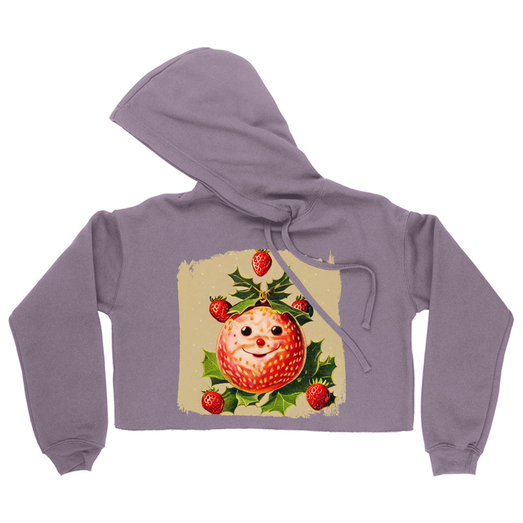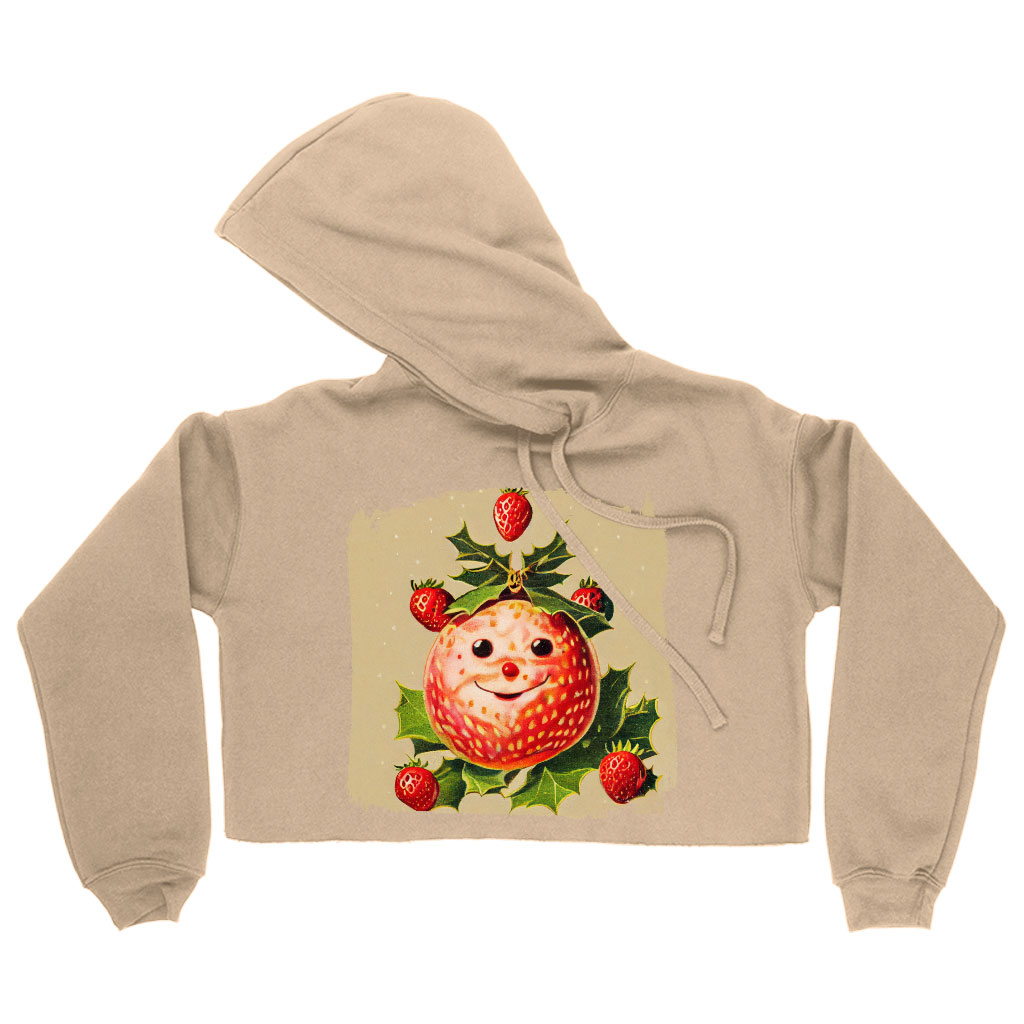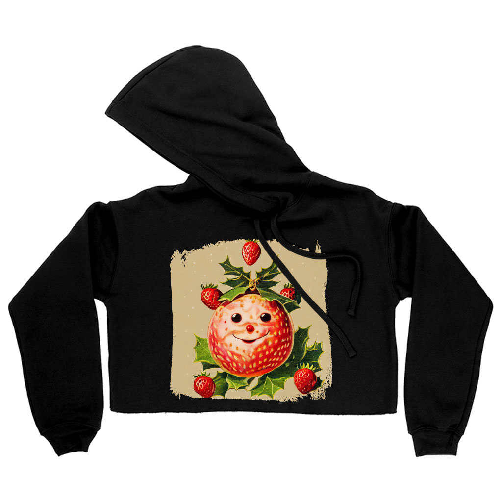 Cartoon Strawberry Women’s Cropped Hoodie – Strawberry Print Cropped Hoodie – Trendy Hooded Sweatshirt