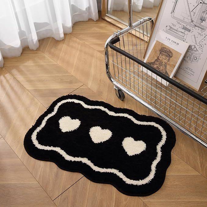 Our rug distinguishes itself through its unique heart shape, adding an element of love and warmth to your home. The contrasting black and white colors provide a modern yet timeless aesthetic that can complement any living space. Whether placed in your living room, bedroom, hallway, or as a welcoming doormat, it creates an inviting atmosphere that speaks volumes about your taste.