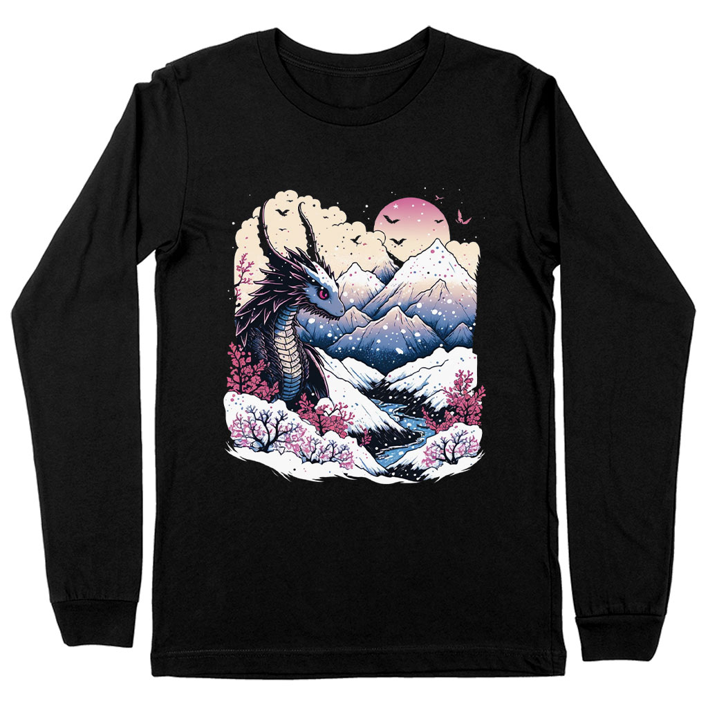 Chinese Dragon Long Sleeve T-Shirt – Mountain T-Shirt – Nature Long Sleeve Tee Shirt