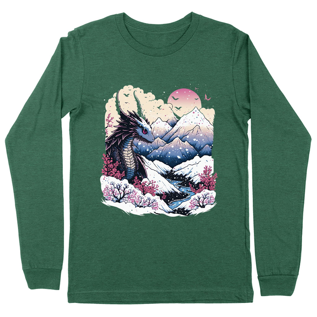 Chinese Dragon Long Sleeve T-Shirt - Mountain T-Shirt - Nature Long Sleeve Tee Shirt Clothing T-Shirts Color : Black|Heather Forest|White
