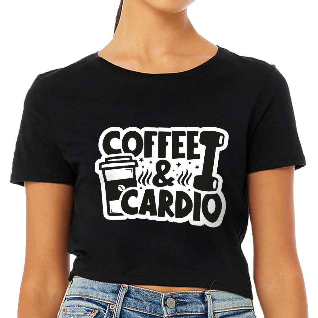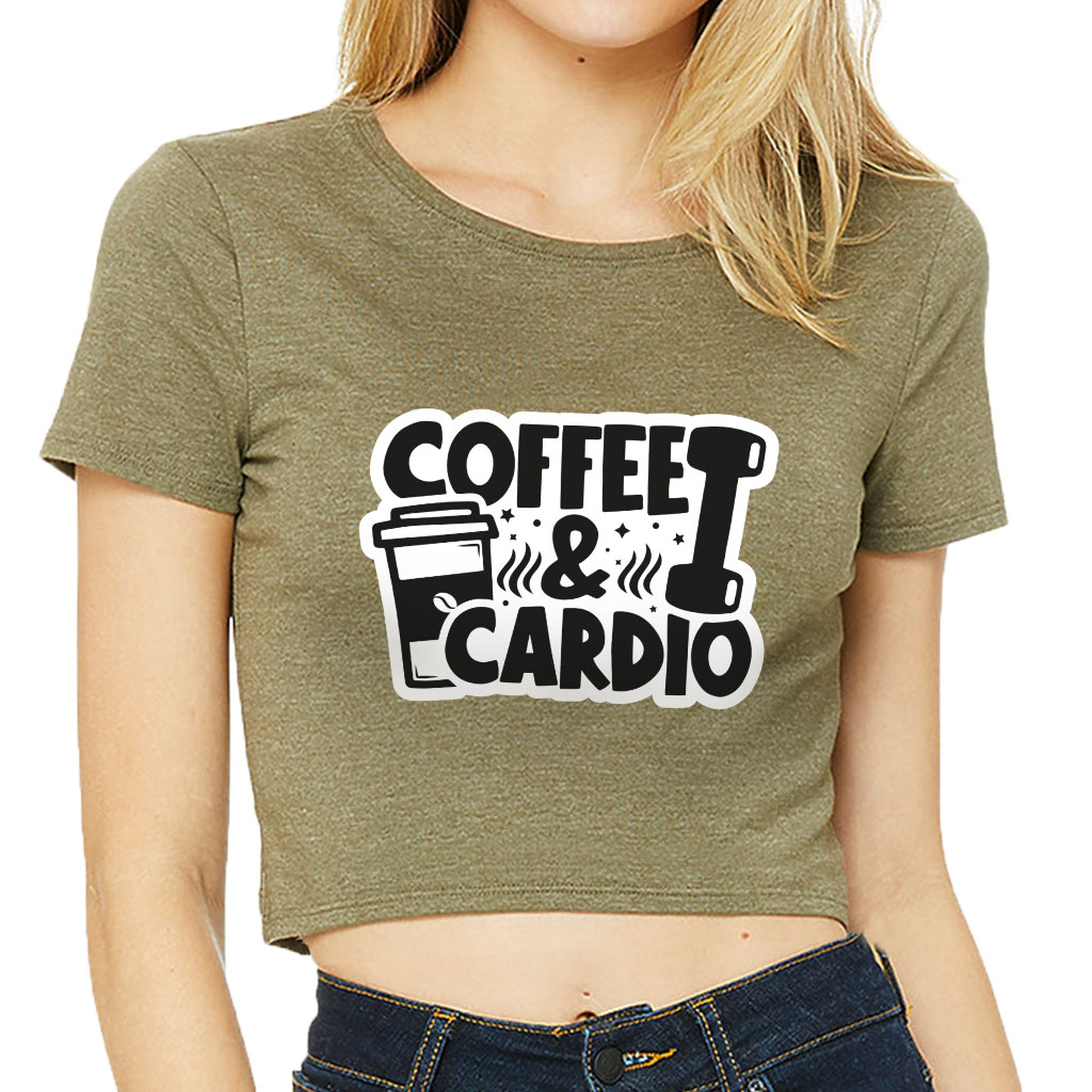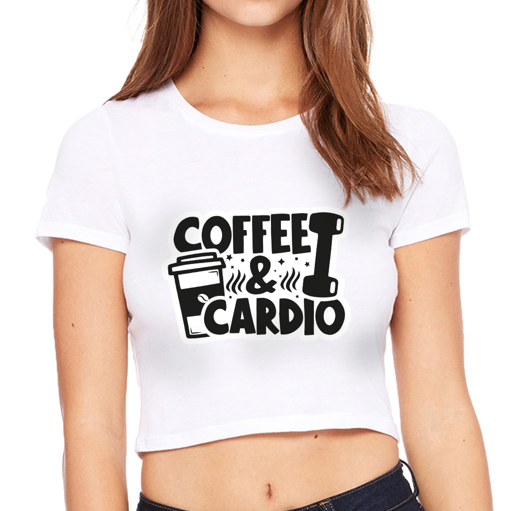 Coffee and Cardio Women’s Cropped T-Shirt – Graphic Crop Top – Themed Cropped Tee