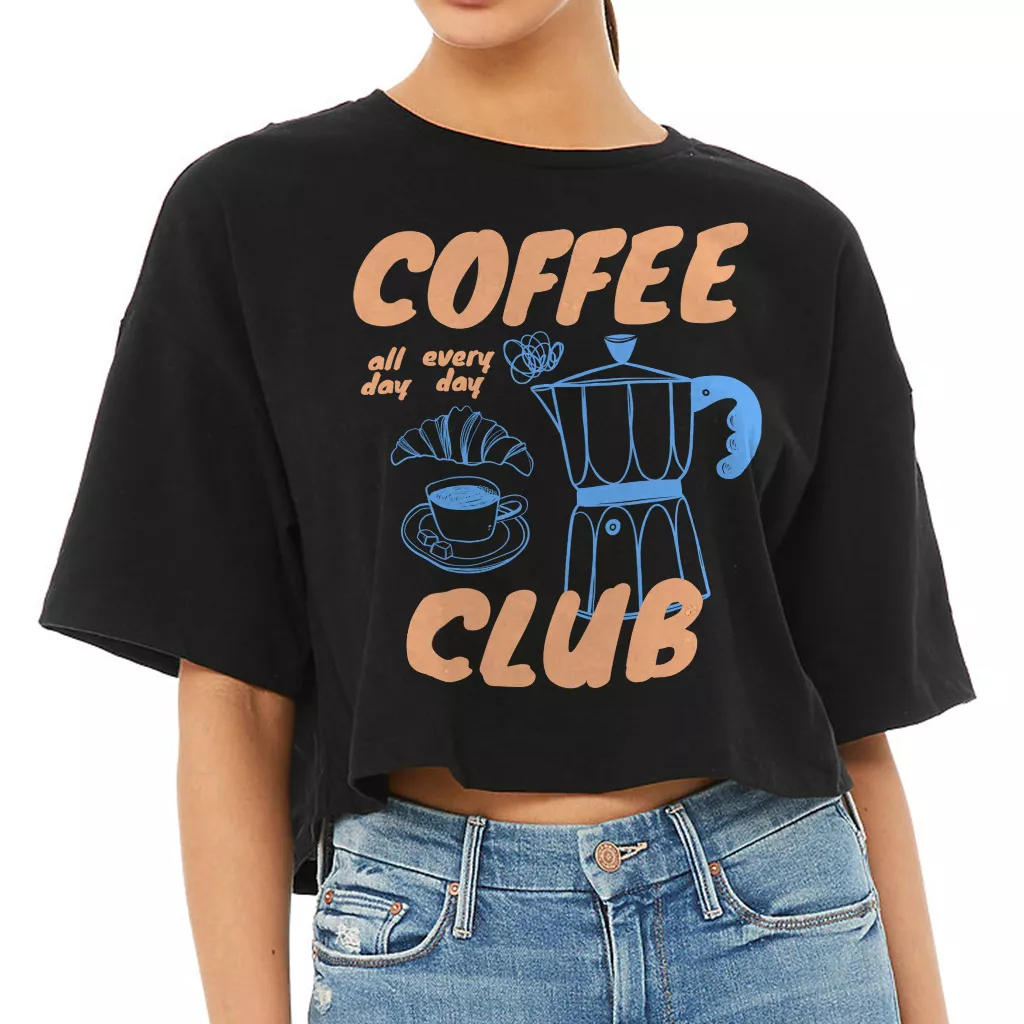 Coffee Club Cropped T-Shirt – Coffee Lover Trendy Tee – Aesthetic Women’s Basic T-Shirt
