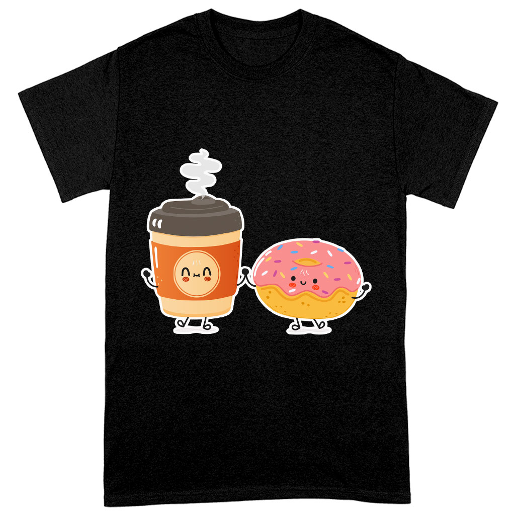 Coffee Donut Heavy Cotton T-Shirt - Love Design Tee Shirt - Heart T-Shirt Clothing T-Shirts Color : Black|Forest Green|White