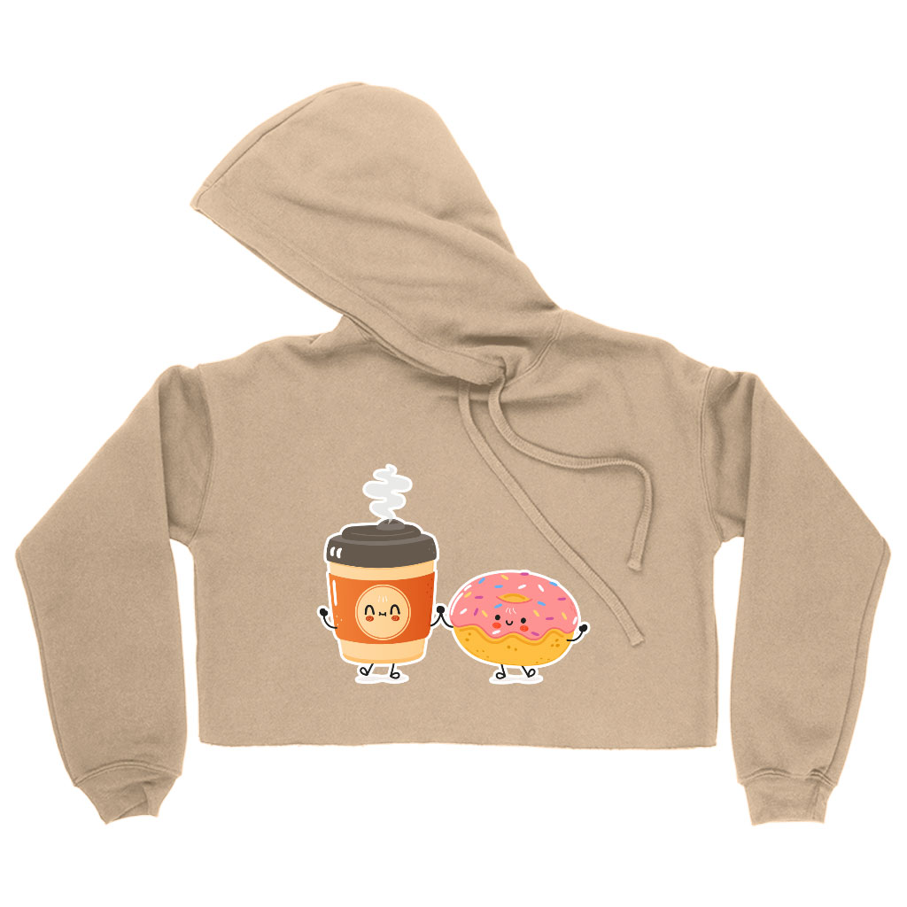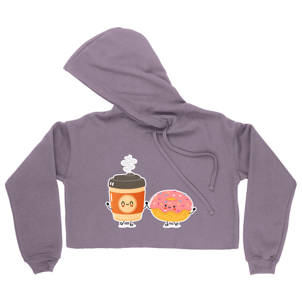 Coffee Donut Women’s Cropped Hoodie – Love Design Cropped Hoodie – Heart Hooded Sweatshirt