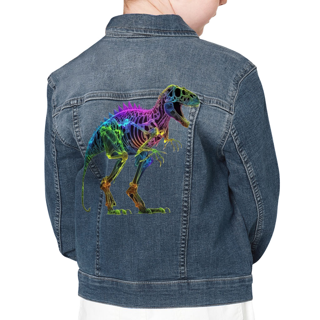 Cool Dinosaur Kids’ Denim Jacket – Graphic Jean Jacket – Illustration Denim Jacket for Kids
