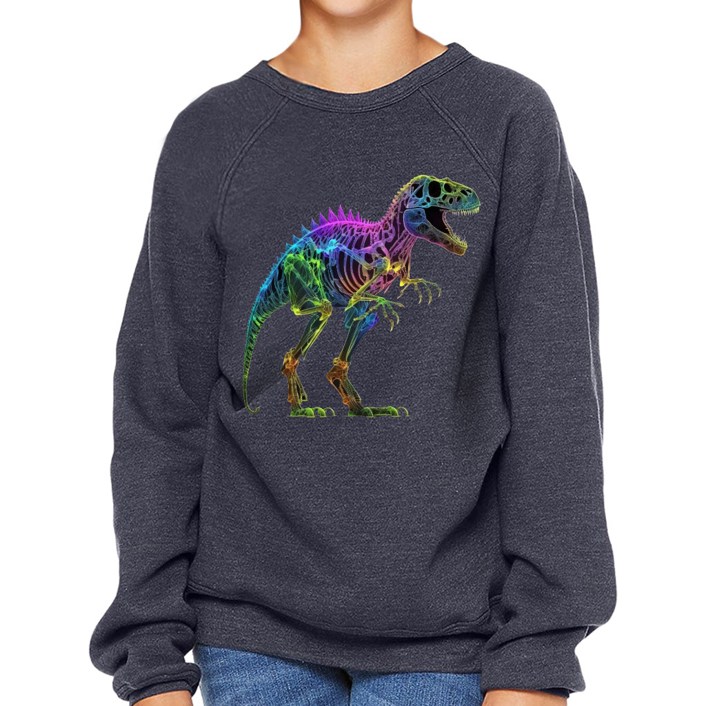 Cool Dinosaur Kids’ Raglan Sweatshirt – Graphic Sponge Fleece Sweatshirt – Illustration Sweatshirt