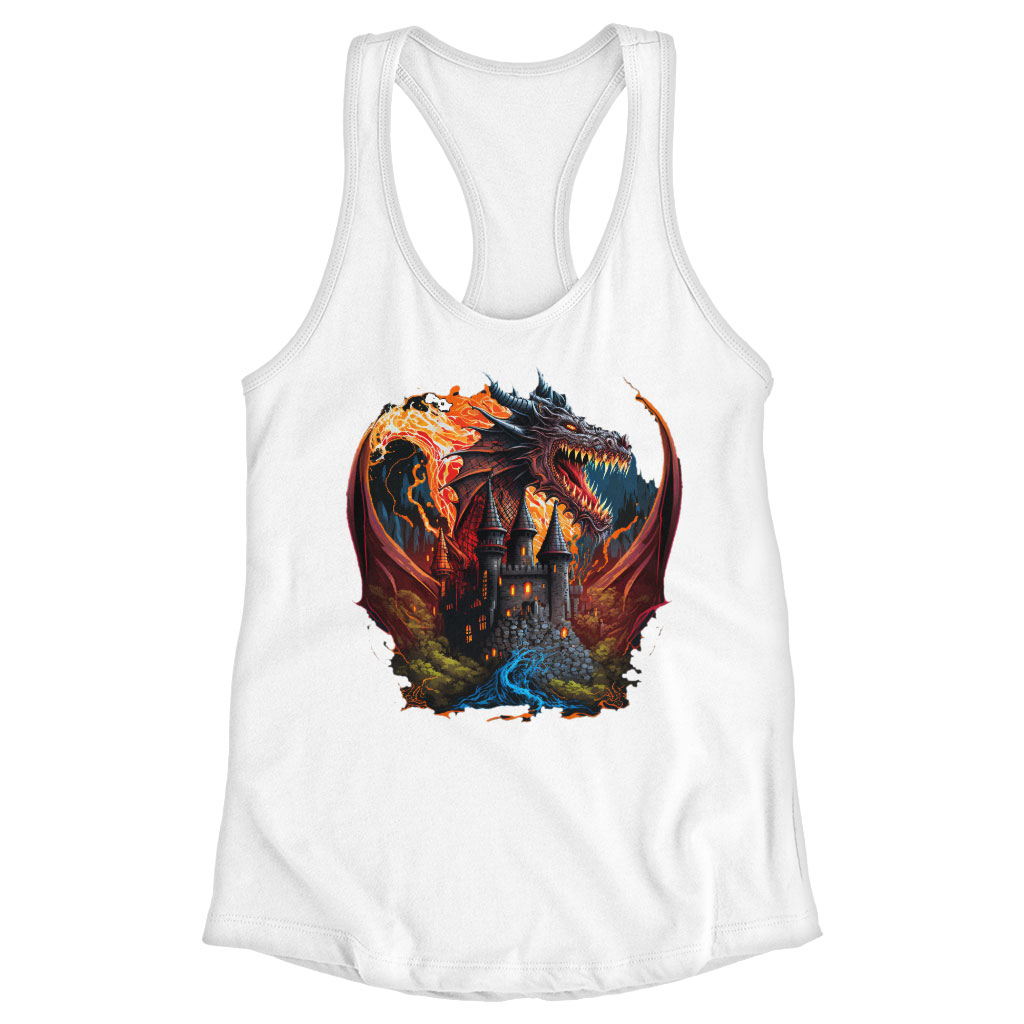 Cool Dragon Racerback Tank - Fantasy Tank - Themed Workout Tank Clothing Tanks Color : Black|Gray|White