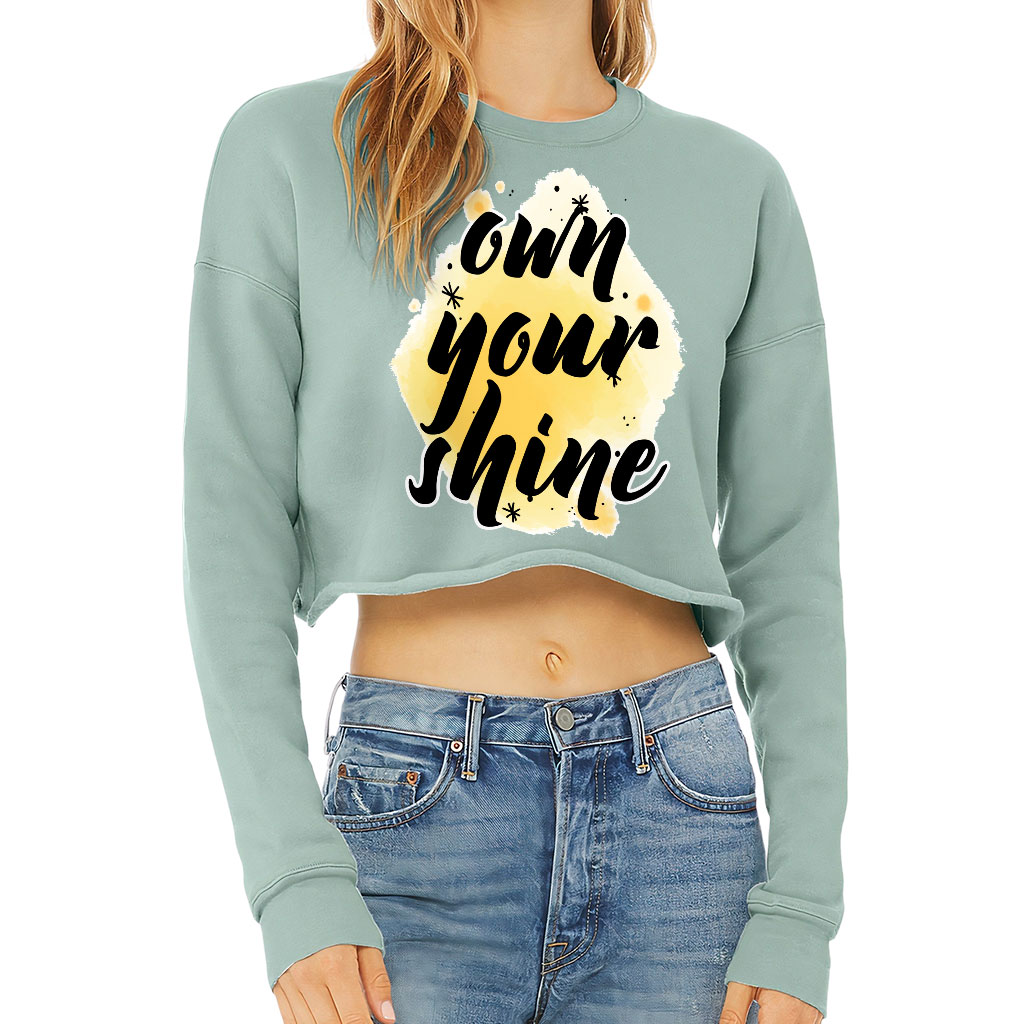 Cool Print Cropped Sweatshirt – Quote Women’s Sweatshirt – Trendy Crop Crew Sweatshirt