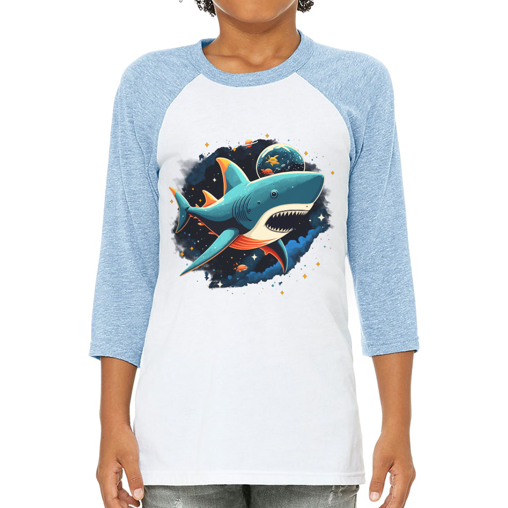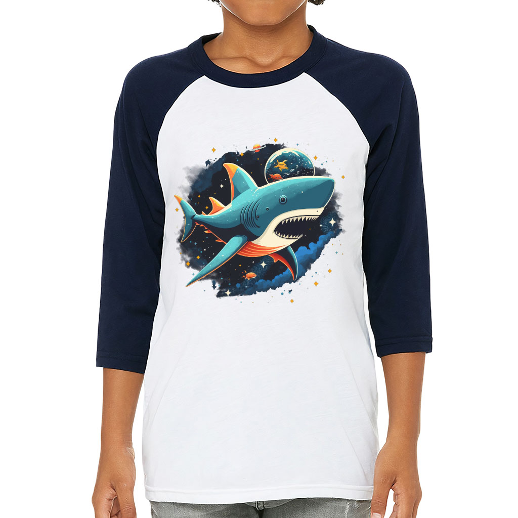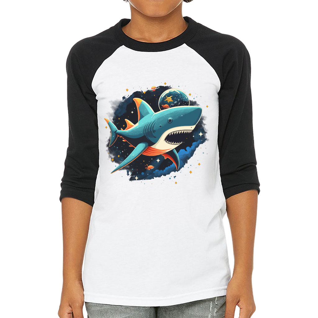 Cool Shark Kids’ Baseball T-Shirt – Graphic 3/4 Sleeve T-Shirt – Best Print Baseball Tee