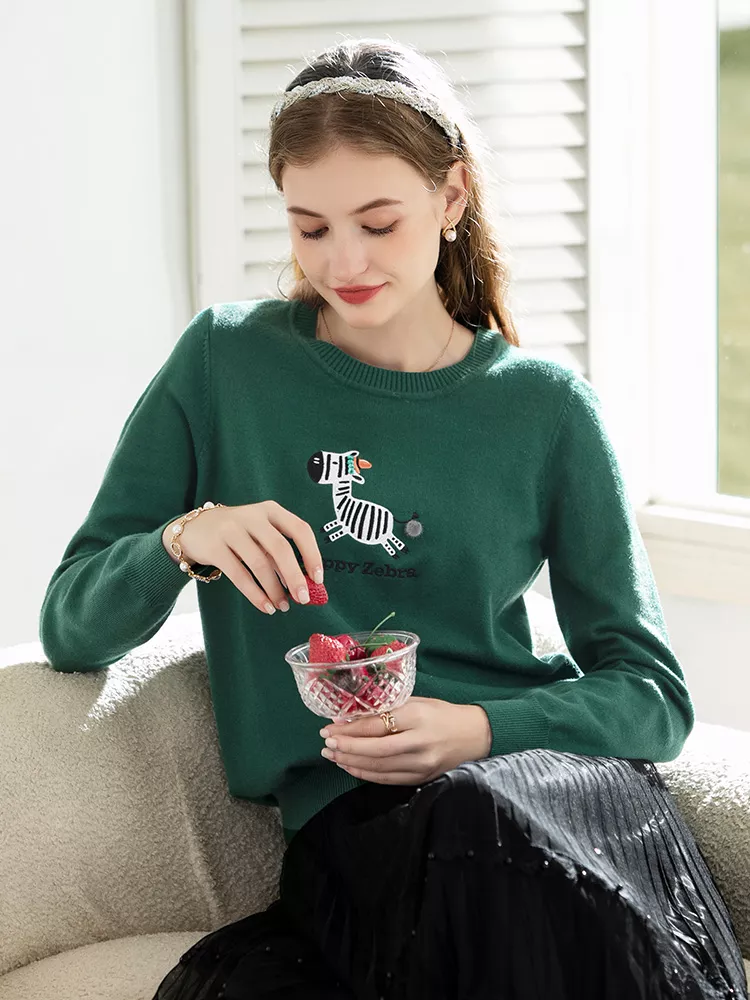 Cozy Embroidery O-Neck Sweater – Soft Pullover for Spring