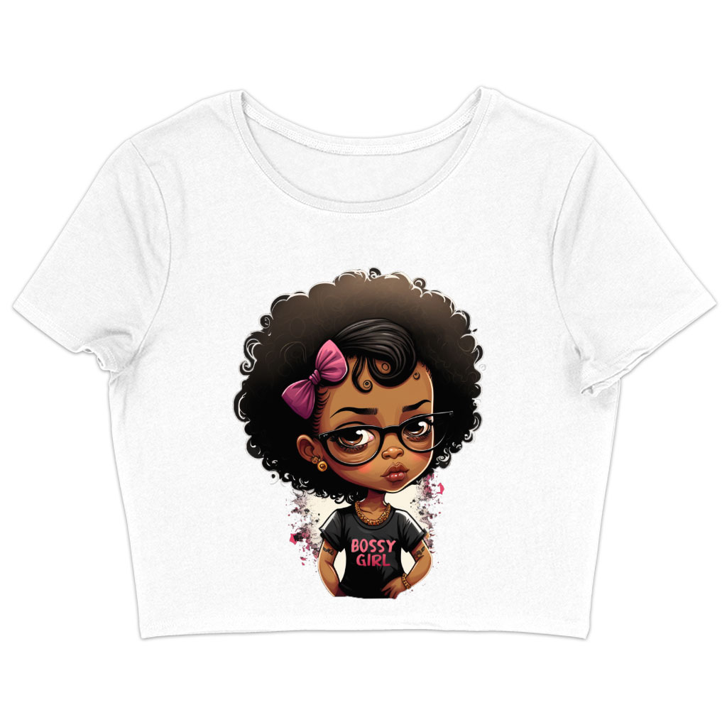 Cute Anime Black Girl Women’s Cropped T-Shirt – Graphic Crop Top – Cartoon Crop Tee Shirt