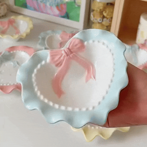 Aside from its practicality, what sets this tray apart is its unique design. The love bow motif and wavy edges are not just decorative; they symbolize care, affection, and attention to detail. The choice of uplifting colors makes it a lively addition to any room, brightening spaces and moods alike. Its ceramic craftsmanship ensures durability, making it a cherished part of your home for years to come.