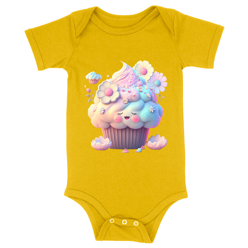 Cute Cupcake Baby Jersey Onesie - Kawaii Graphic Baby Onesie - Themed Baby One-Piece Clothing Kids' Clothing Onesies Color : Heather Dust|White|Yellow