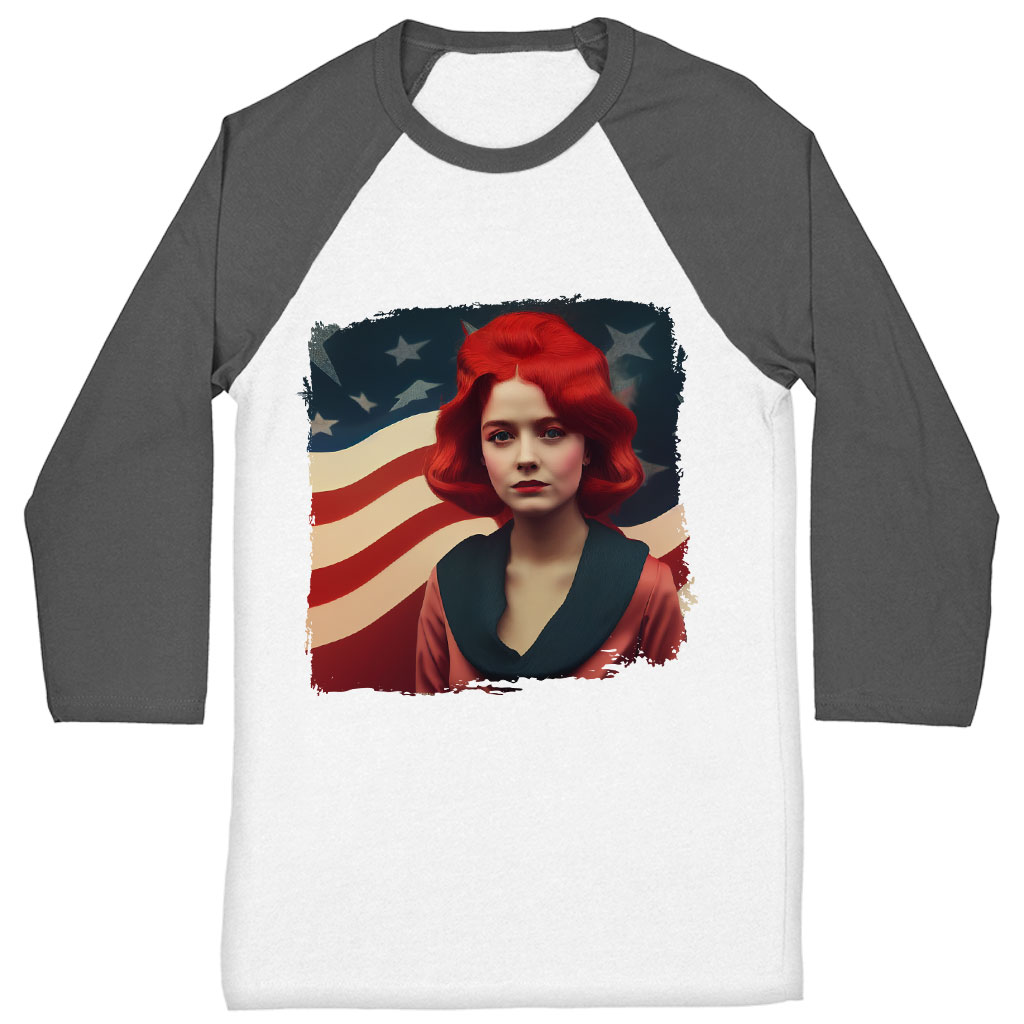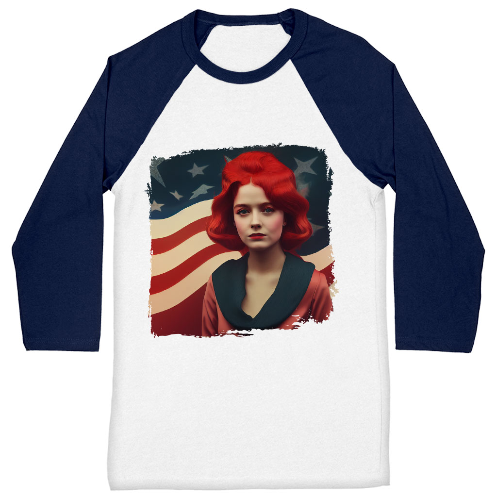 Cute Girl Baseball T-Shirt – Flag T-Shirt – American Flag Tee Shirt