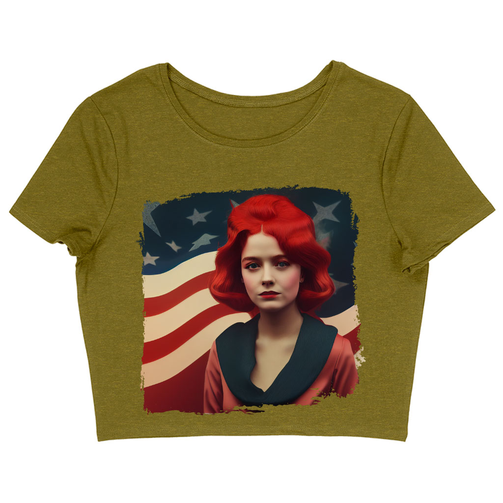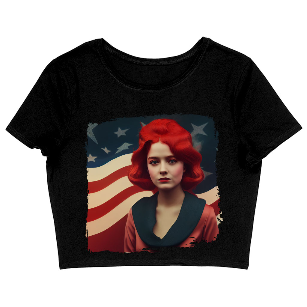 Cute Girl Women’s Cropped T-Shirt – Flag Crop Top – American Flag Crop Tee Shirt