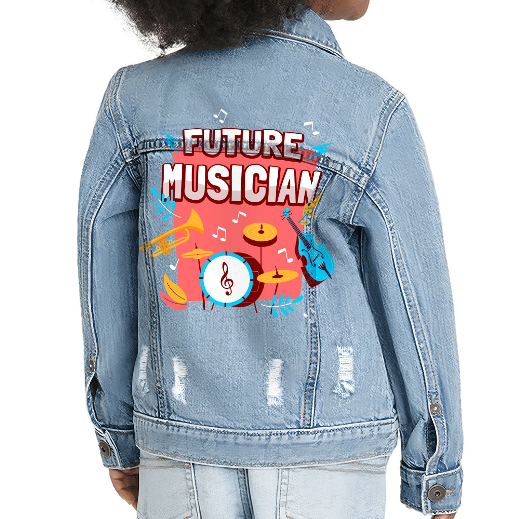 Let’s style your little one for any occasion with Graphic Jean Jacket! This cool and classic denim jacket is the perfect way to dress up any outfit – from casual, to dressy, and everything in between. Crafted from soft and comfortable material with a distressed design, this timeless piece is sure to be a favorite. It features a turn-down collar and long sleeves, as well as two chest pockets and a button closure on the front. Your little one will look oh-so-cute while staying warm in this hip casualwear piece. Add some pizzazz to any outfit and unlock your little one’s fashionista potential with Art Denim Jacket for Kids!