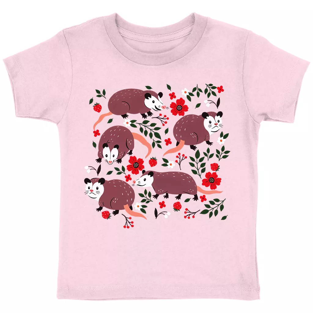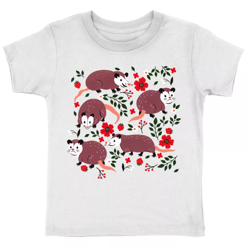 Cute Opossums Toddler Cotton T-Shirt – Cottagecore Short Sleeve Tee – Possum T-Shirt for Kids