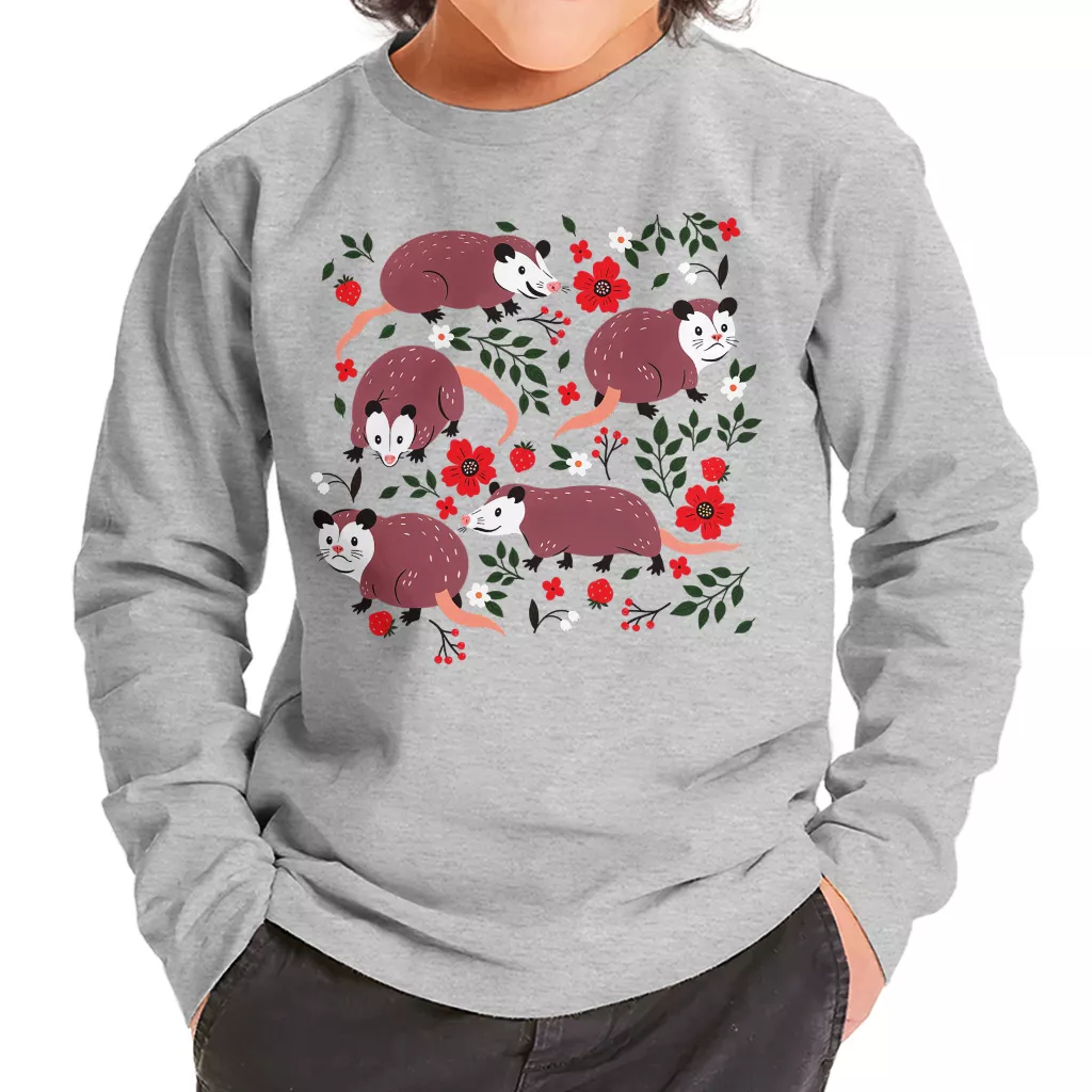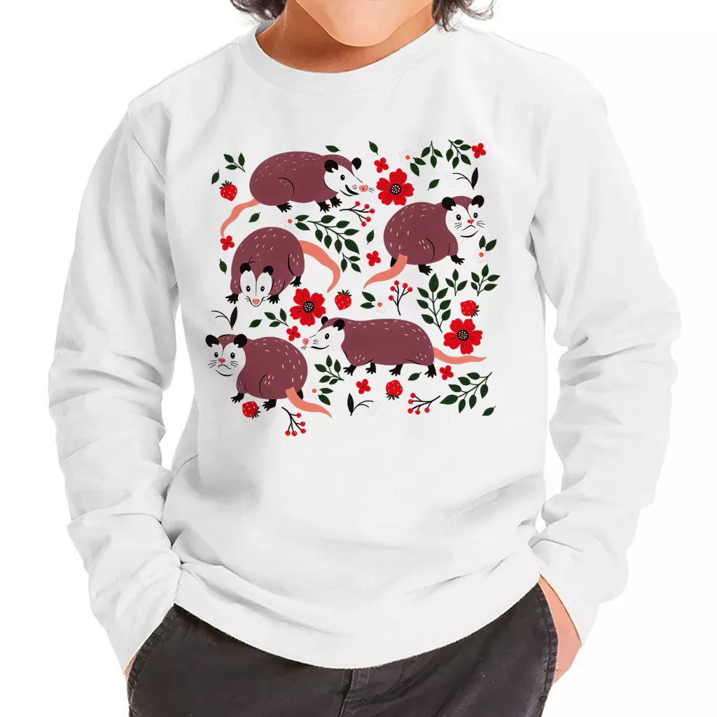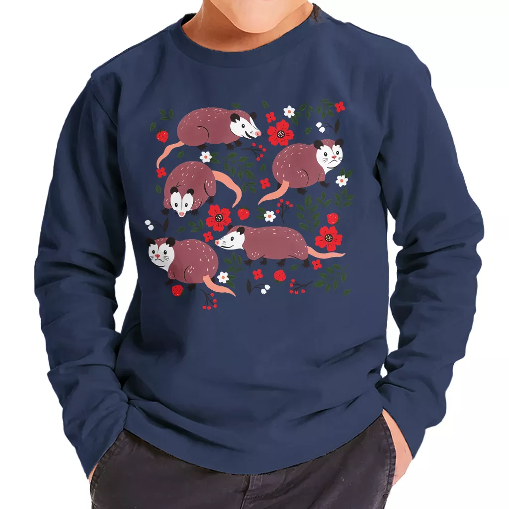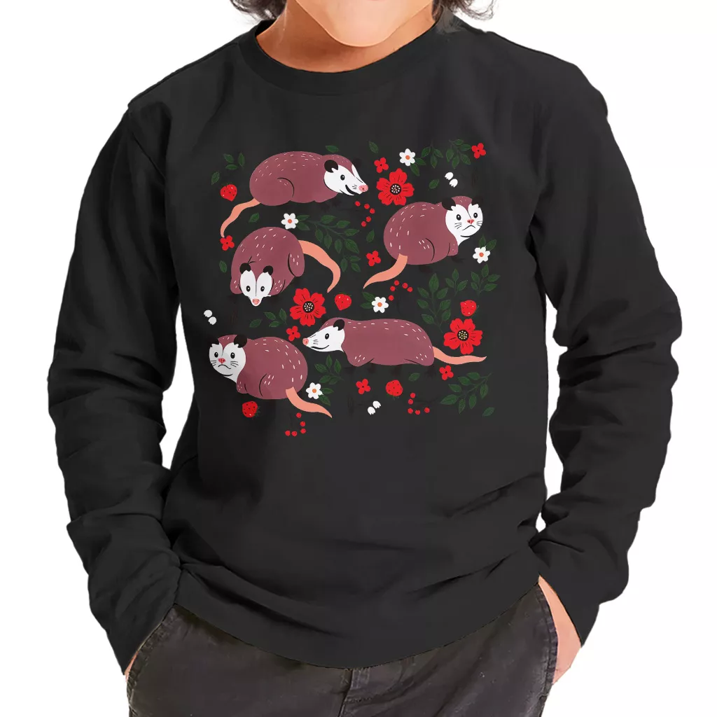 Cute Opossums Toddler Long Sleeve T-Shirt – Cottagecore Boy Girl Tee – Possum T-Shirt for Kids