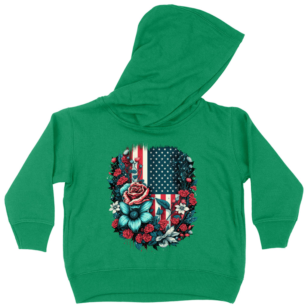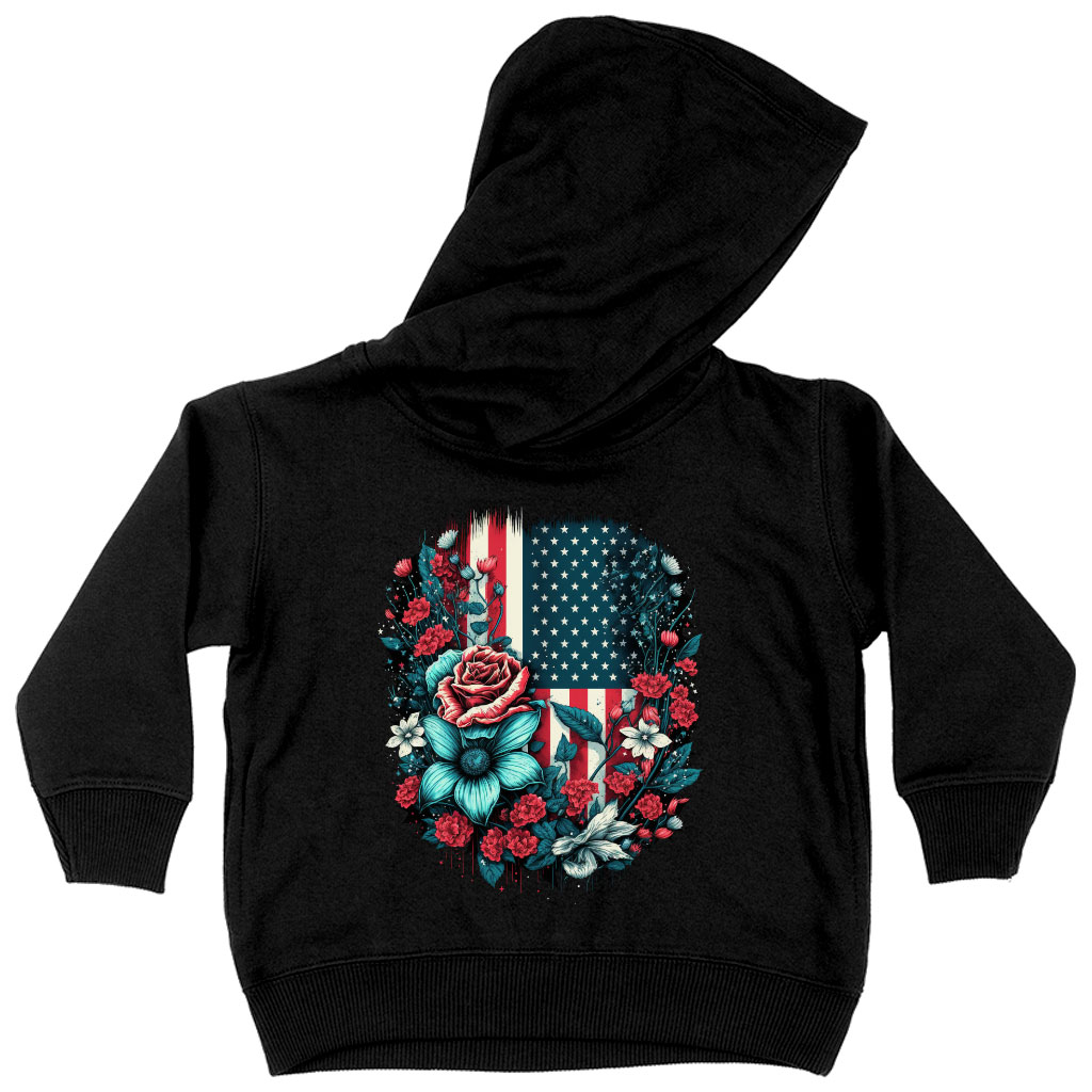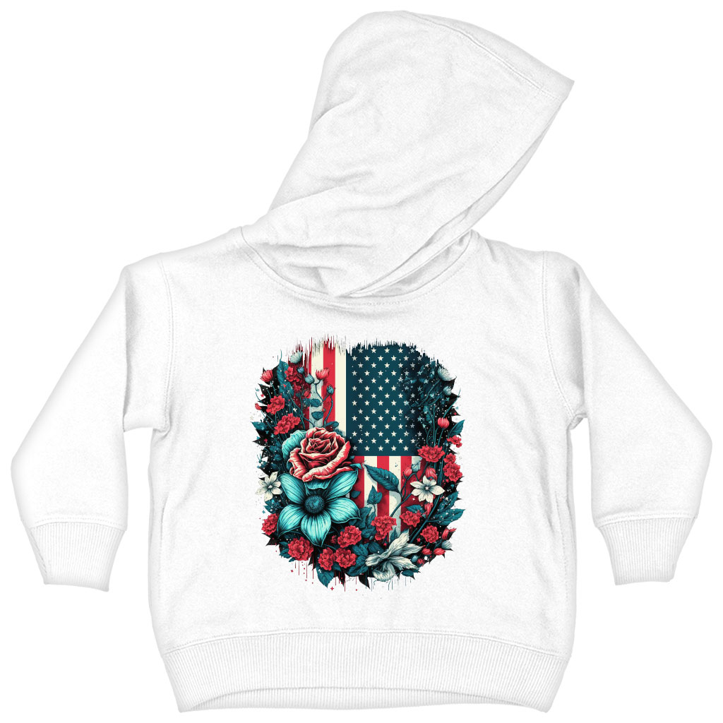 Cute Patriotic Toddler Hoodie – Floral Toddler Hooded Sweatshirt – USA Flag Kids’ Hoodie