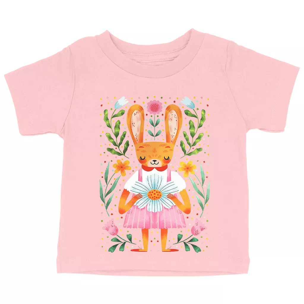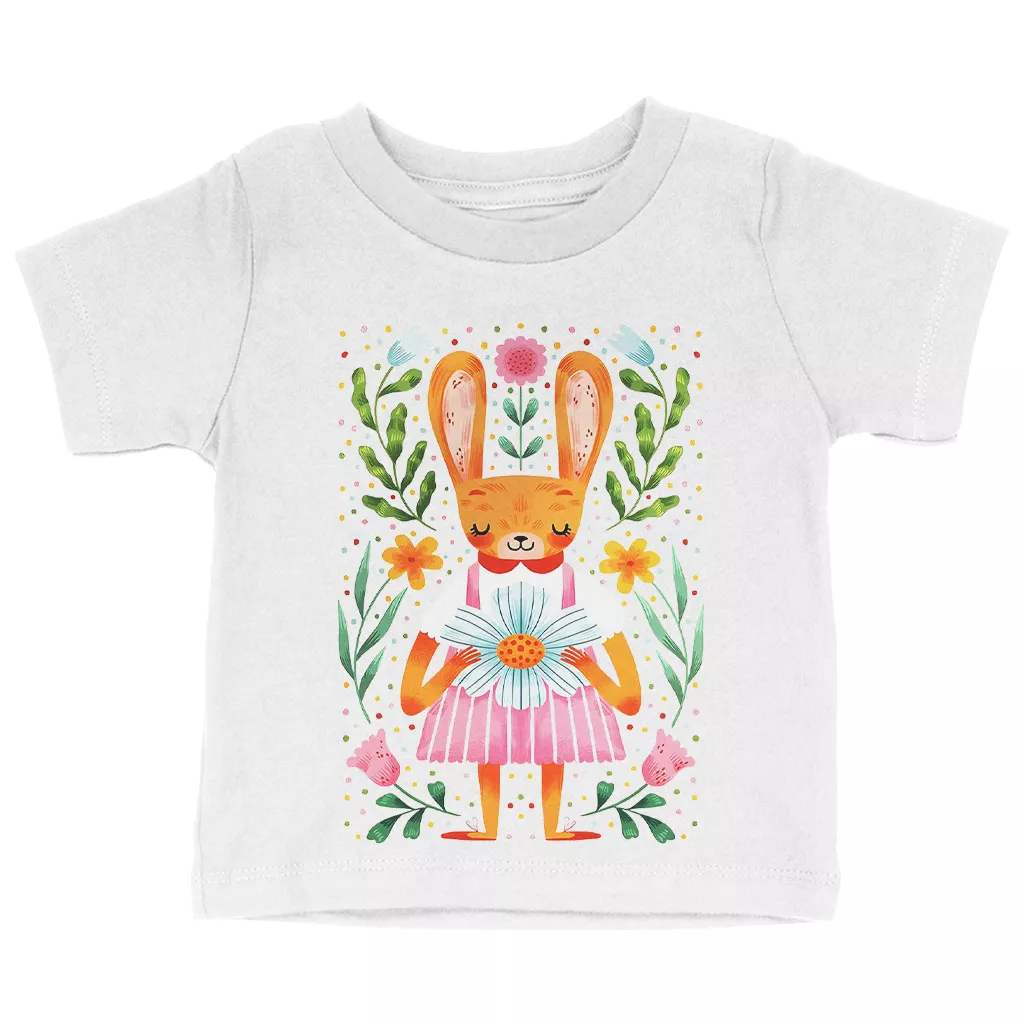 Cute Rabbit Baby T-Shirt – Spring Bunny T-Shirt for Kids – Boho Short Sleeve Tee