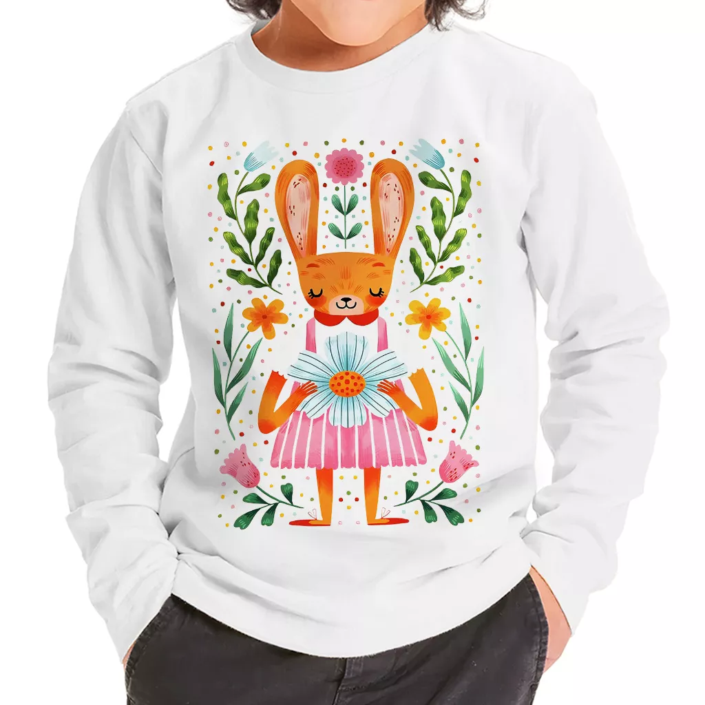 Spring Bunny T-Shirt for Kids combines comfort and durability to provide your child with endless hours of wear and tear. Our tee is perfect for outdoor adventures or classroom activities. This long sleeve tee offers warmth and comfort for chilly nights.