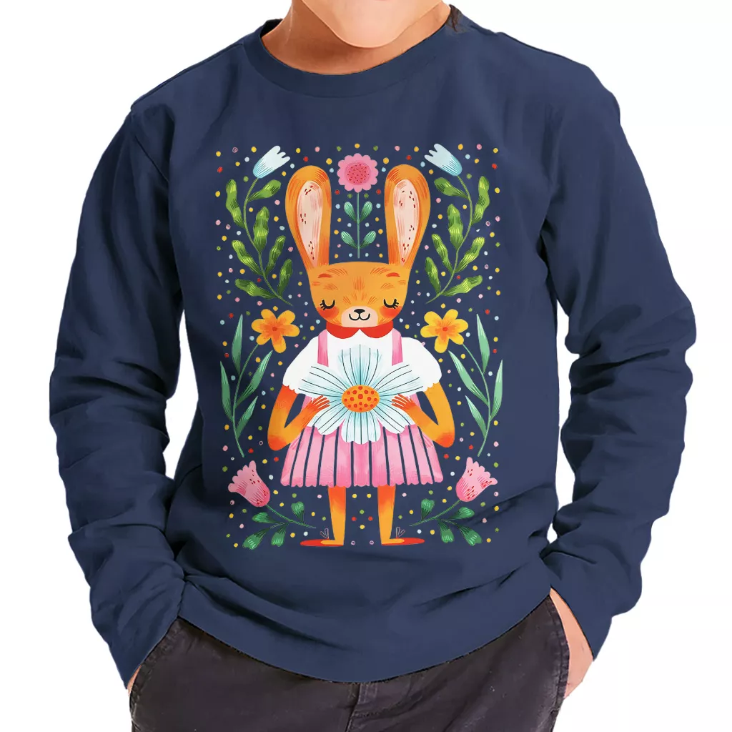 Cute Rabbit Toddler Long Sleeve T-Shirt – Boho Boy Girl Tee – Spring Bunny T-Shirt for Kids
