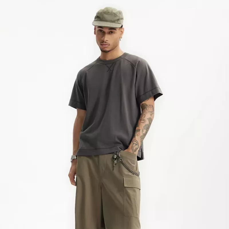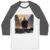 features raglan 3/4 sleeves and a modern fit that is perfect for a day
