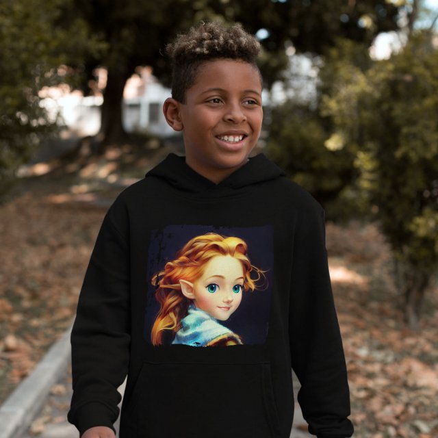 Cute Young Wood Elf Princess Kids' Sponge Fleece Hoodie - Colorful Kids' Hoodie - Anime Hoodie for Kids Clothing Clothing Hoodies Kids' Clothing New Arrivals Color : Athletic Heather|Black|Military Green
