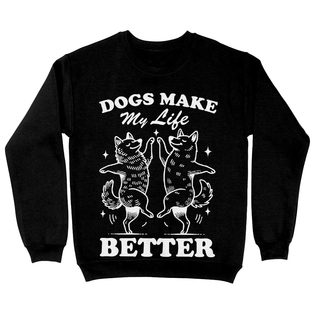 Dogs Make My Life Better Sweatshirt – Cute Dogs Crewneck Sweatshirt – Vintage Animal Unisex Sweatshirt